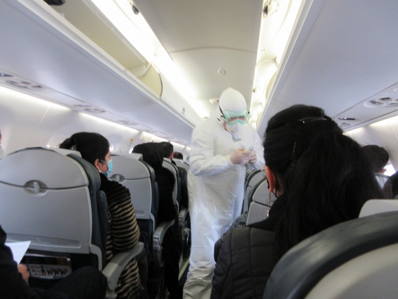 防護服を着た検疫官が乗り込んできたALA国際空港