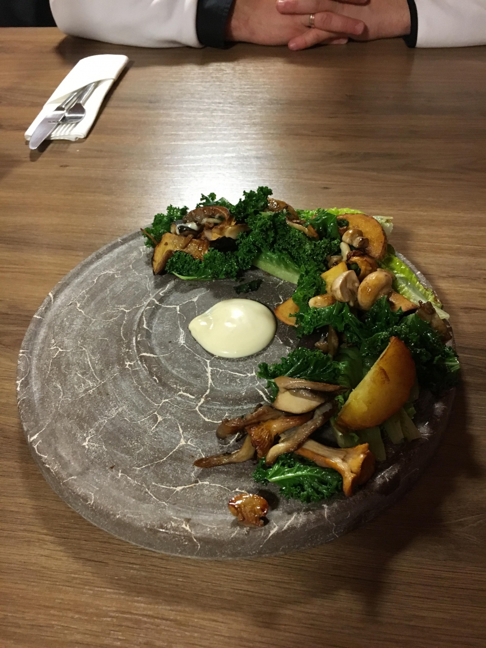 「中の城」大食堂。ツアー客の足元辺りに当時の床暖房跡がある。