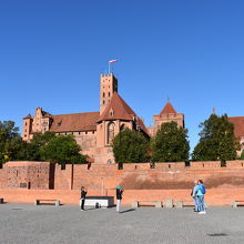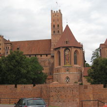 第二次世界大戦で破壊され修復したのでレンガの色が明るい。