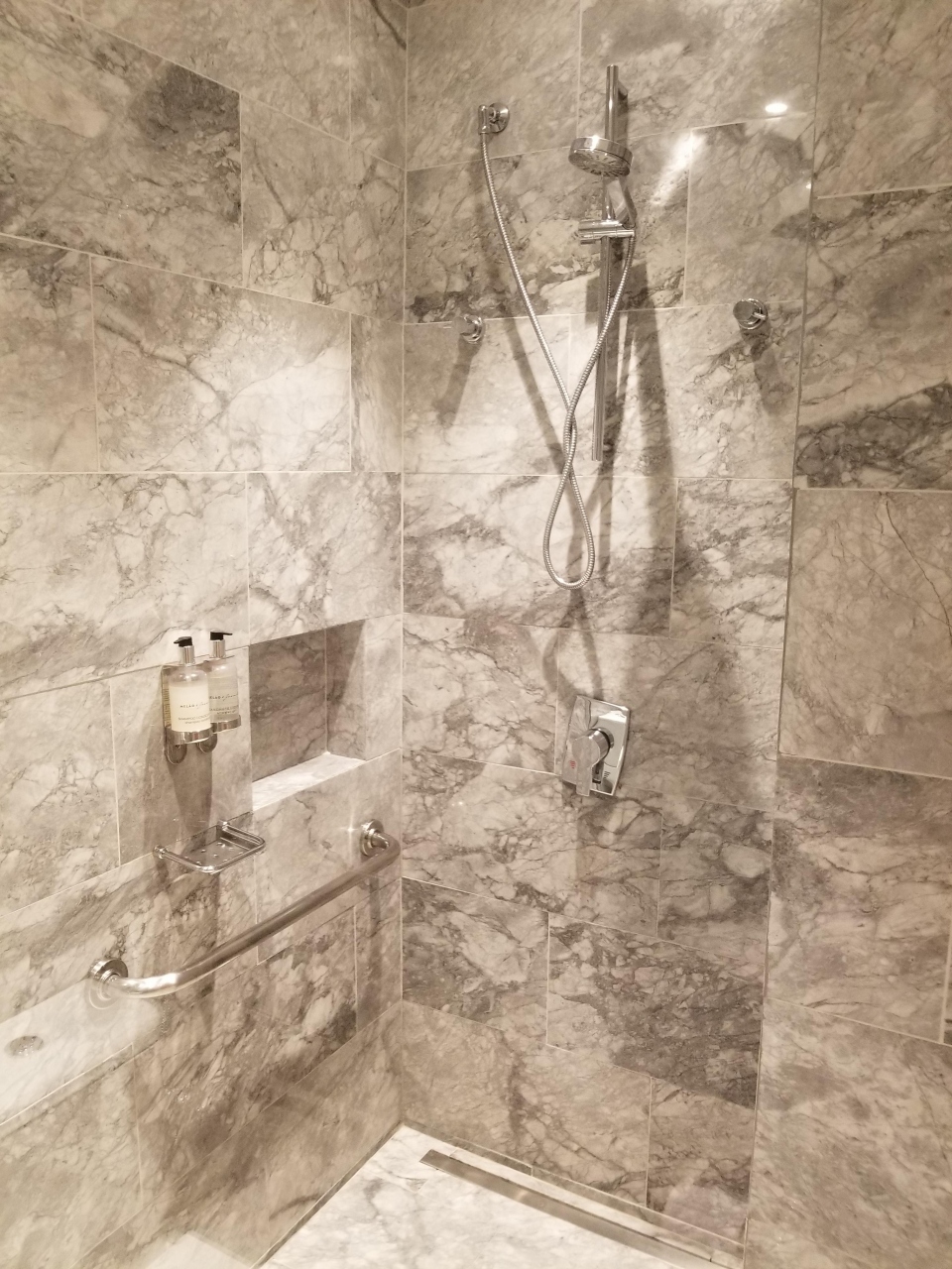 手にはホテルのシャンプーと布きれ。丁寧で明確に断ります。。