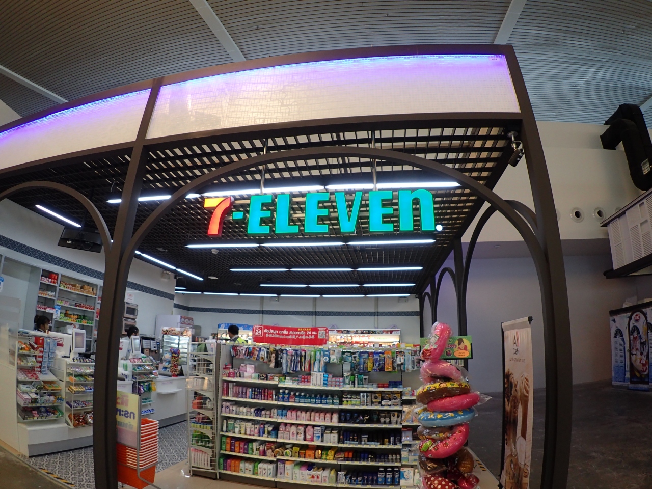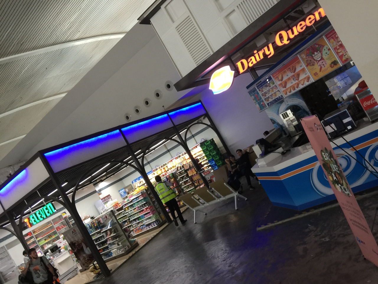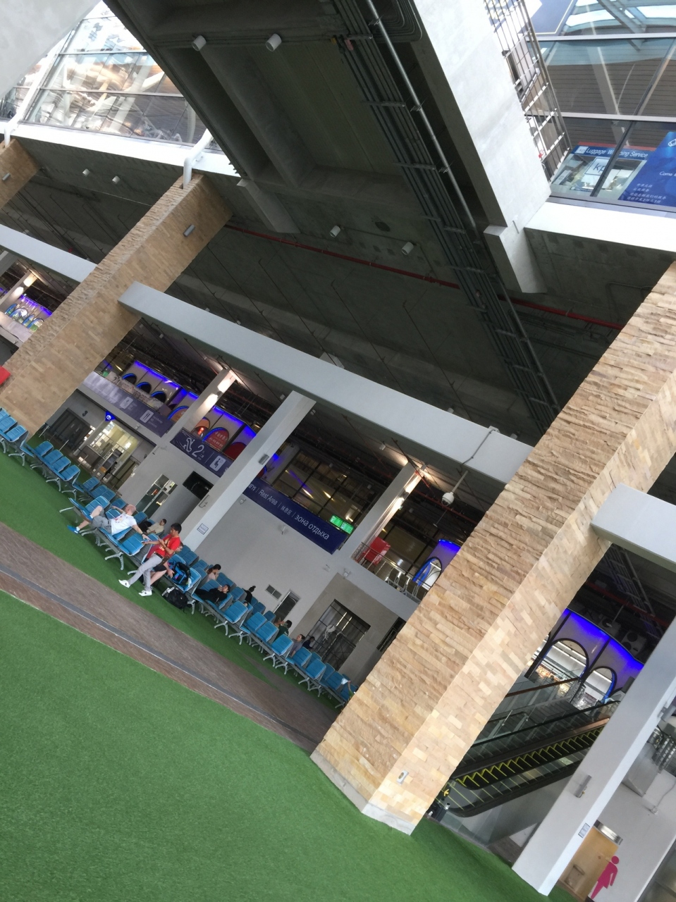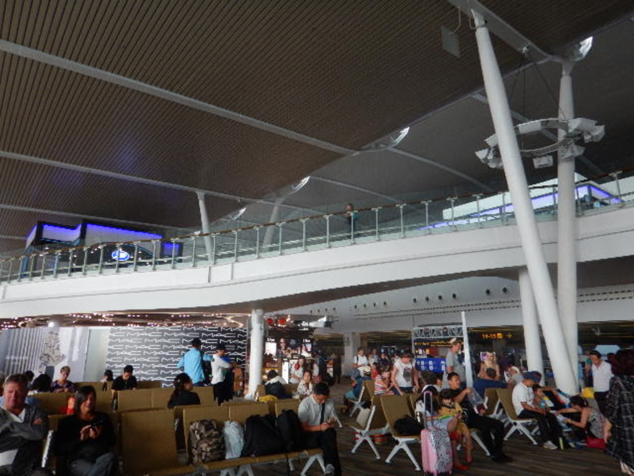 出発時は、ロビーもやや広く、ショップやカフェ、ファストフードもそこそこあります。休憩席もかなりありました。