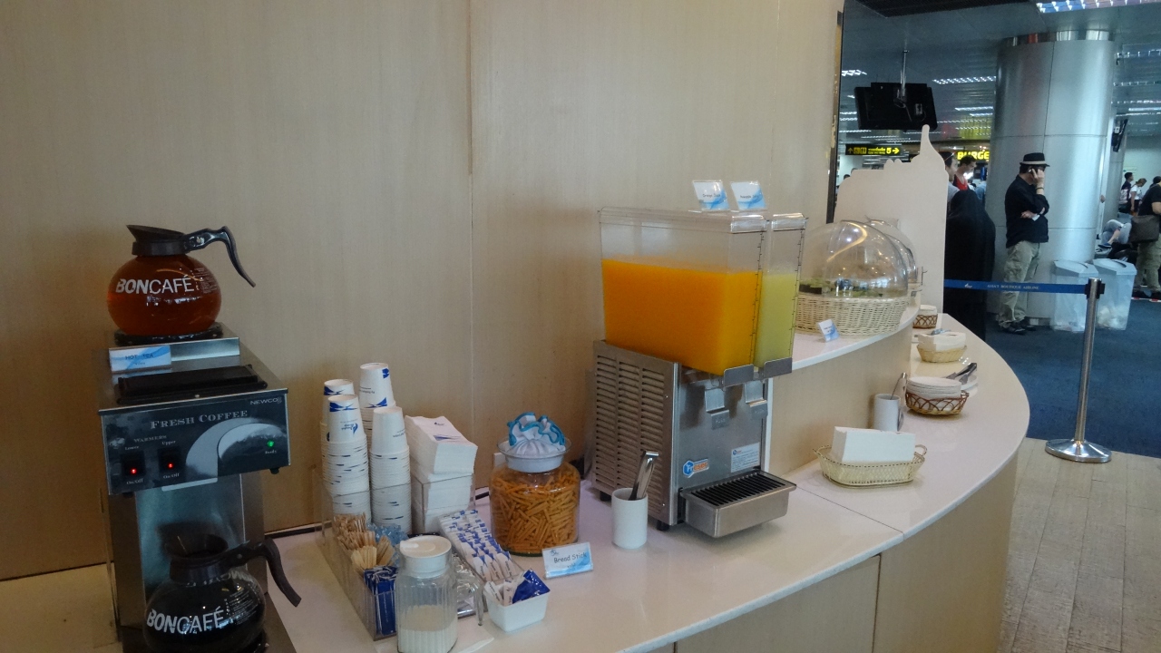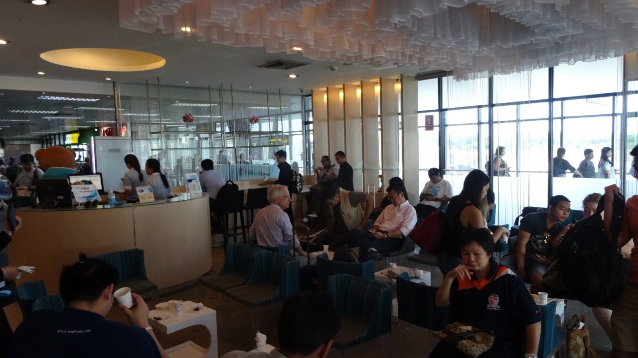 バンコク航空のラウンジは、こじんまりしていますが、空港の一番奥にあります。ソフトドリンクやマフィン等、軽食がいただけますが、バンコク航空はエコノミーでもラウンジが使えるため、なかなか席が空かず、入ってきては出ていく人が結構いました。