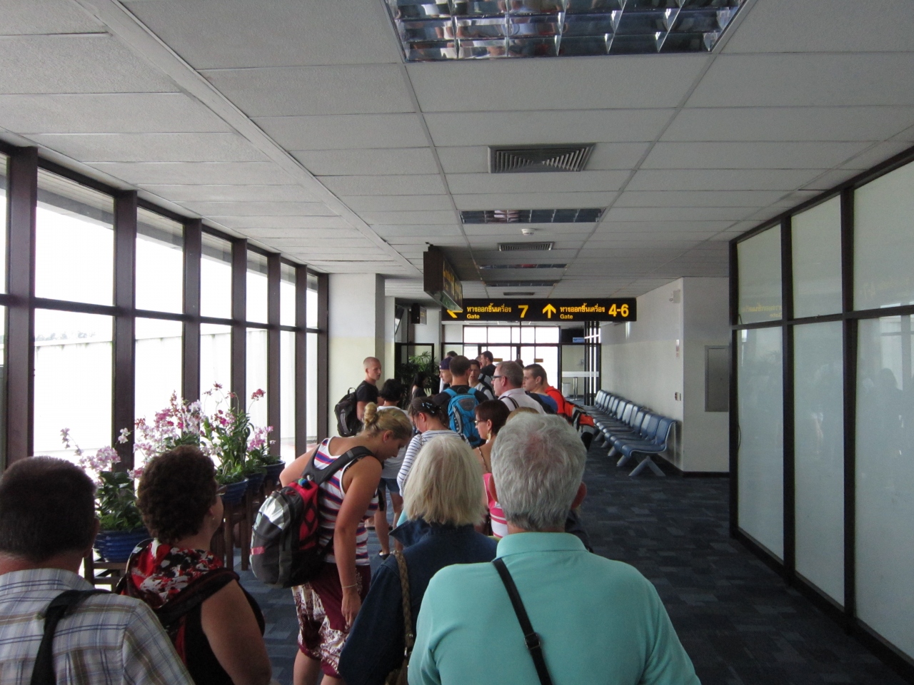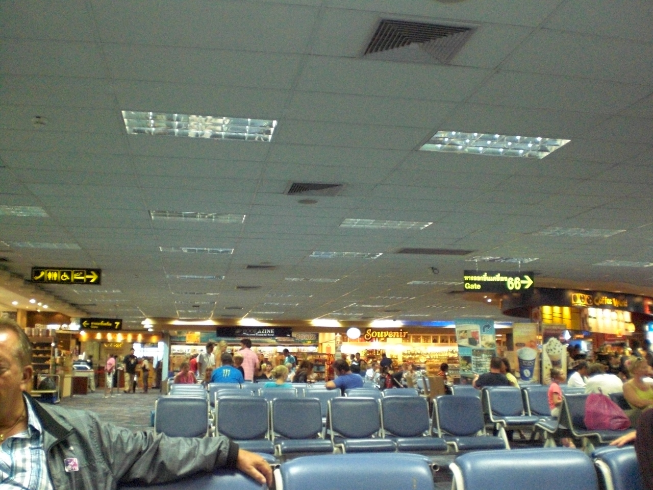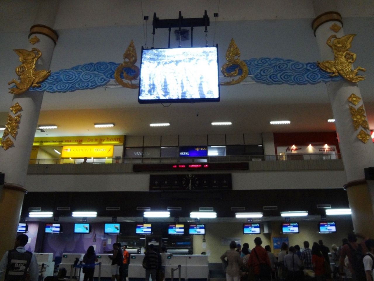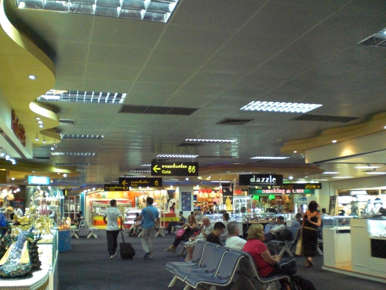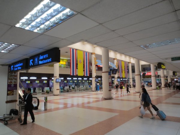タイの場合、観光目的で30日以内に第3国へ出国する航空券を持っていれば、ノービザで入国できる ターミナル内の銀行の両替所にて両替。