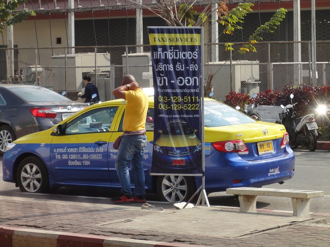 2)タクシー 150B ※連絡先に直接?して予約。行き先、迎えに来てもらう場所、時間。