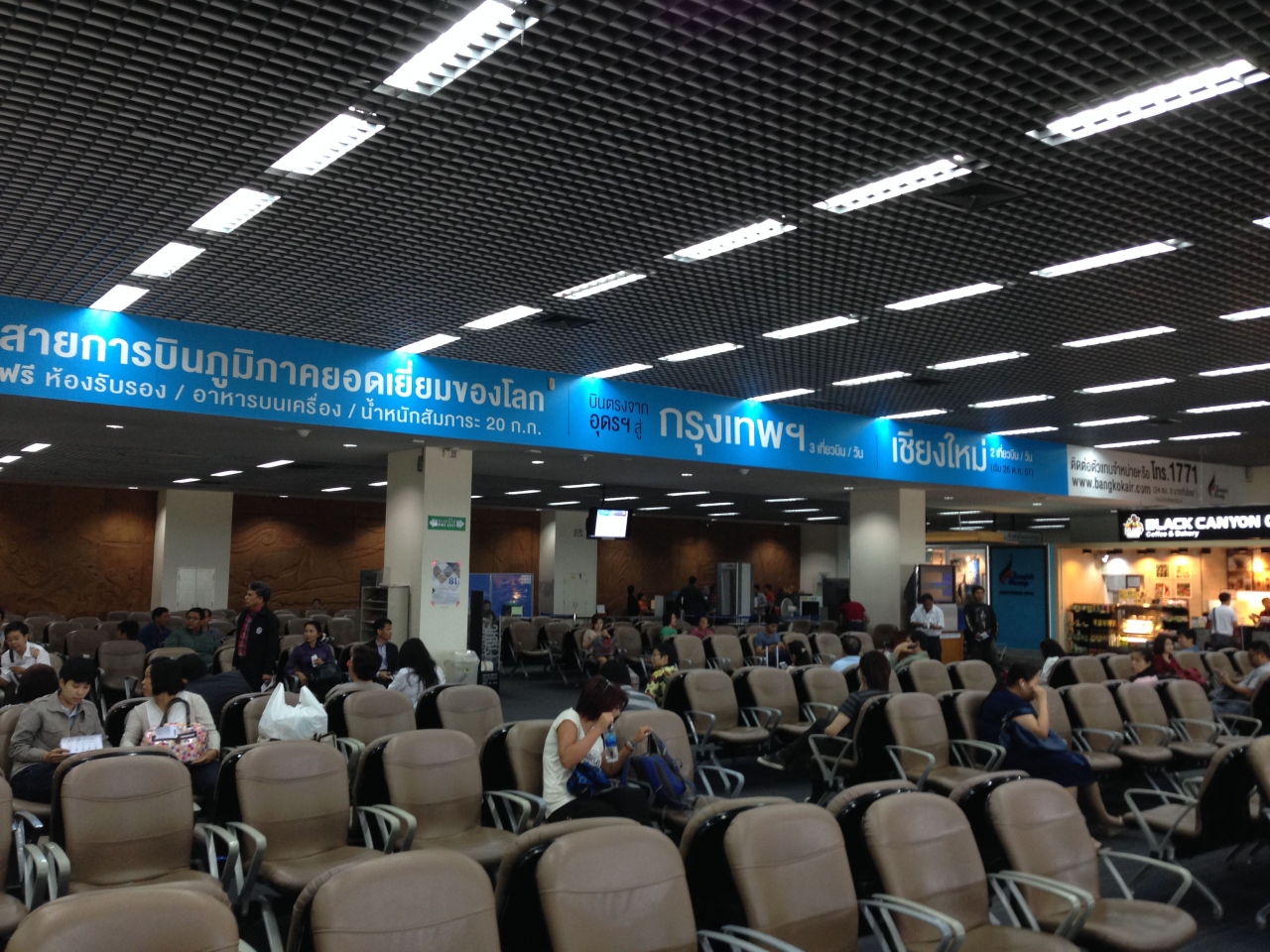 いちおう国際空港になってますが国内線のみで便数もそれほど多くはありません 伊丹空港も今でも国際空港の看板を出したままなので... 続きを読む過去に飛んでいた事があればそう言うのかも知れないですね 町の中心街(鉄道駅付近)からは車で20分くらいです 簡単な食事場所はありますが東北地方の田舎の空港なので規模は小さかったです 到着ロビー1階には ノンカイ行き ラオス行きのバス会社のカウンターも有りました この空港はタイ空軍と共用で使用しているので戦闘機の離発着と重なると民間機は待たされるみたいです 実際 バンコク行きの便では30分ほで離陸が遅れたのでどうしたのかと思っていると戦闘機が訓練中のようでした 軍隊優先みたいですね 閉じる