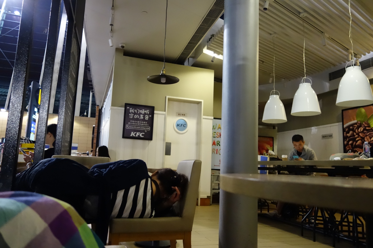 T1出発ロビーのケンタに寝床を発見!!ありがたく就寝