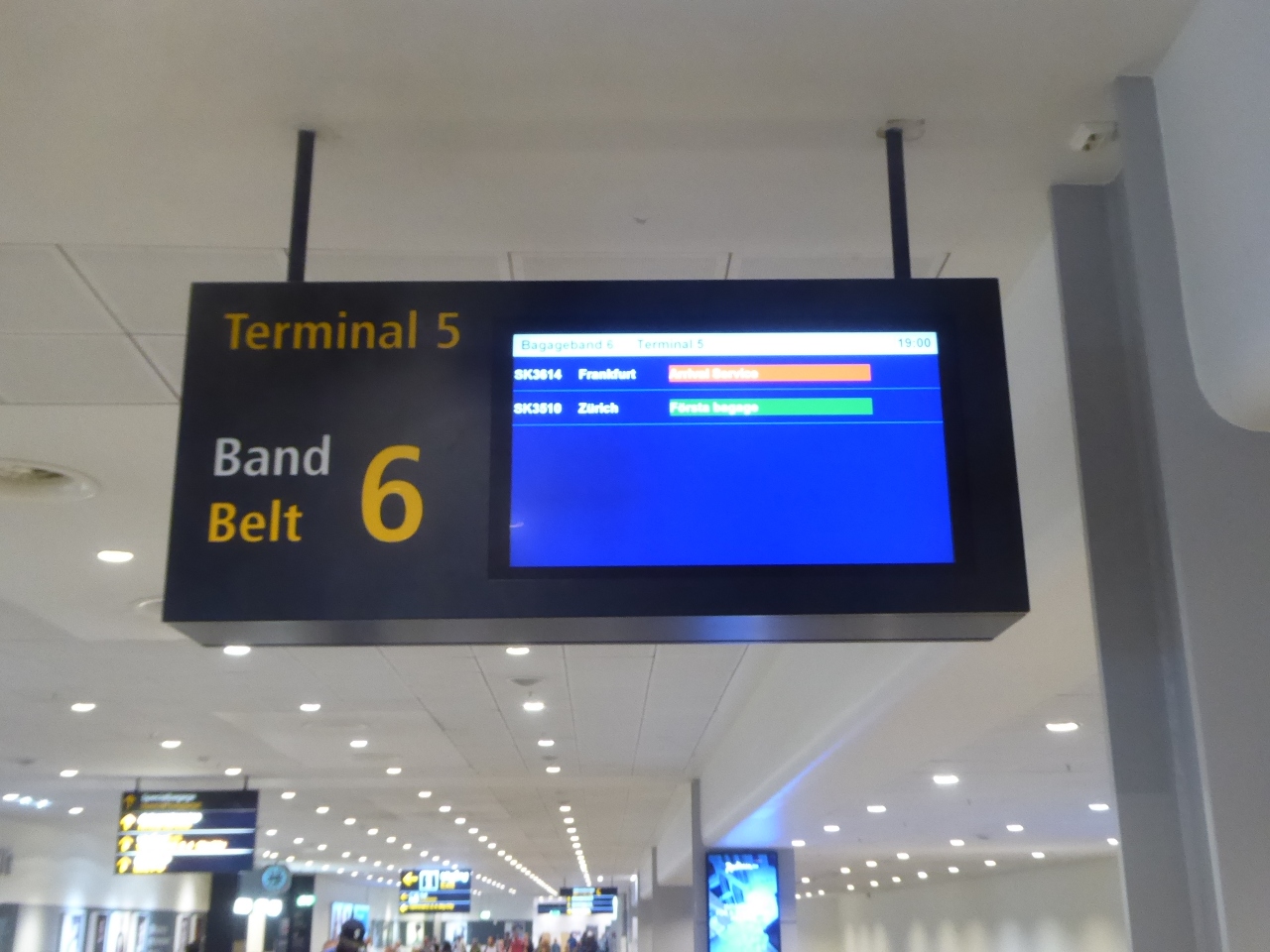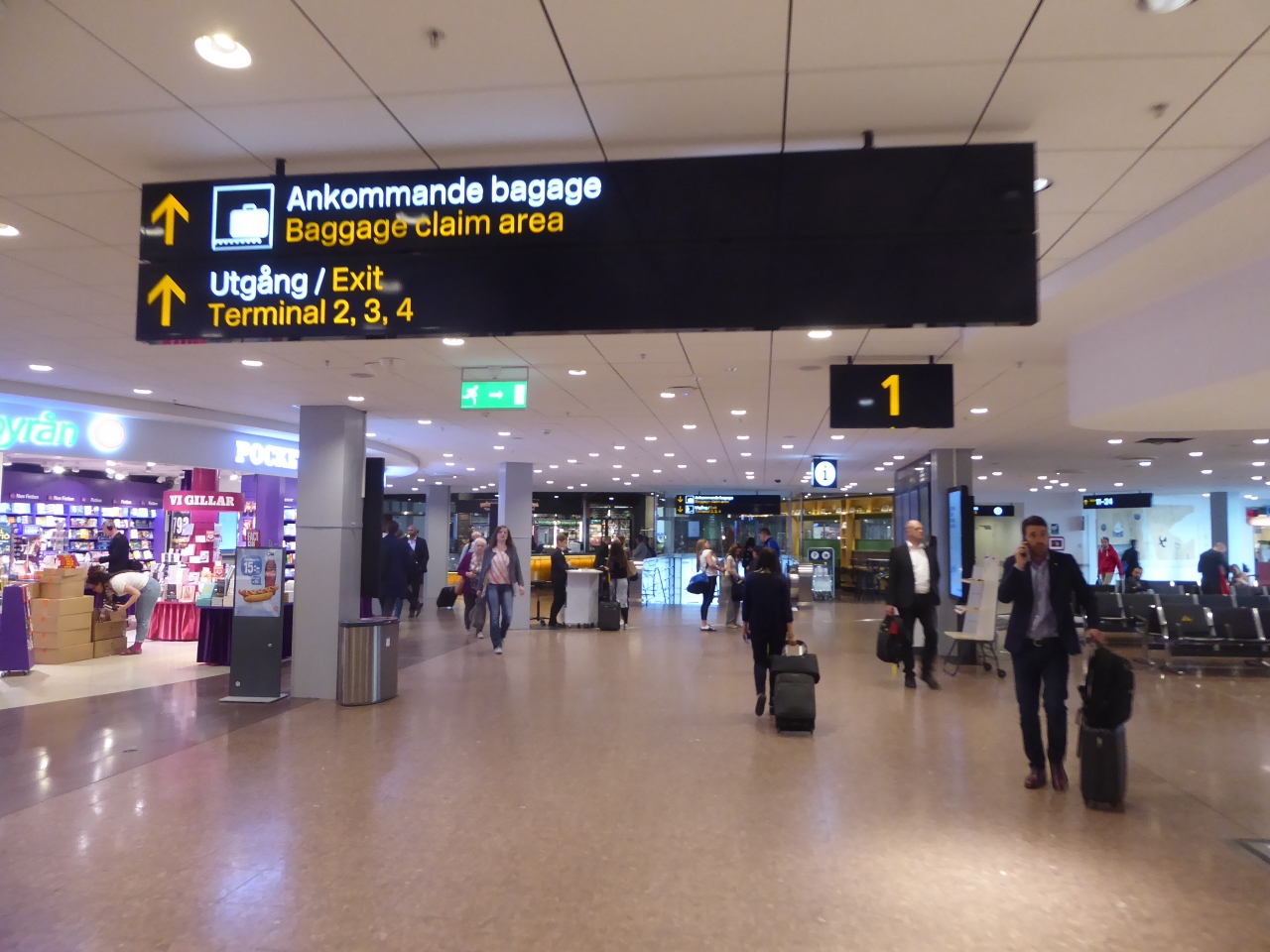 チューリッヒでEUへの入境手続きを終えていましたので、アーランダ空港到着では国内便と同様で、バゲージクレームでの荷物引き取りがありました。混んではいないし、表示も分かり易いので、順調でした。翌朝のタリン便搭乗でも国内便感覚での搭乗で、スムースでした。観光を終えて帰国する際もこの空港を利用しましたが、混んでいないし、表示通りに進むことで何の問題もありませんでした。ヨーロッパの大空港、パリ、ロンドン、フランクフルトなどと比べると、コンパクトで利用し易い国際空港だと思います。