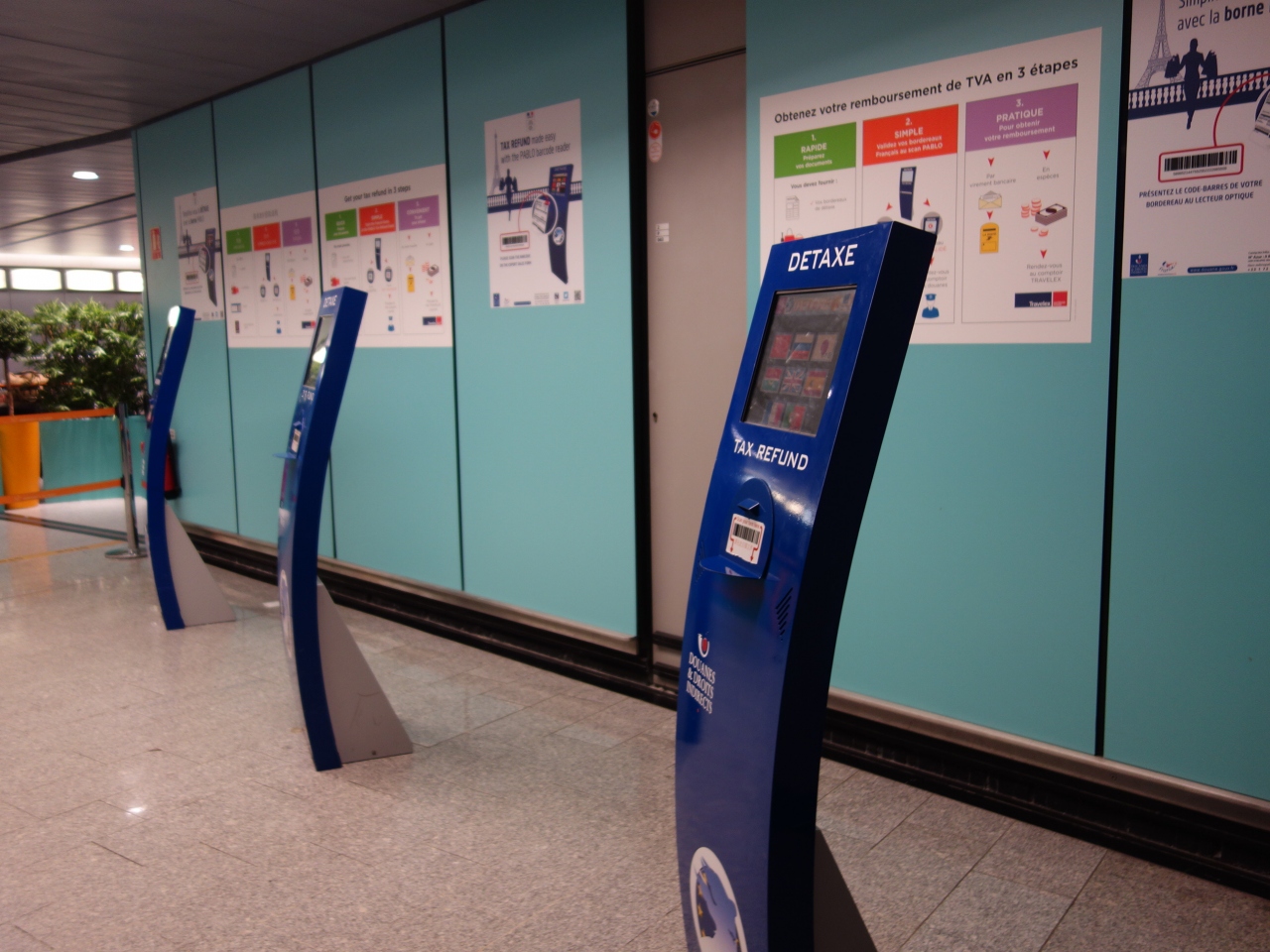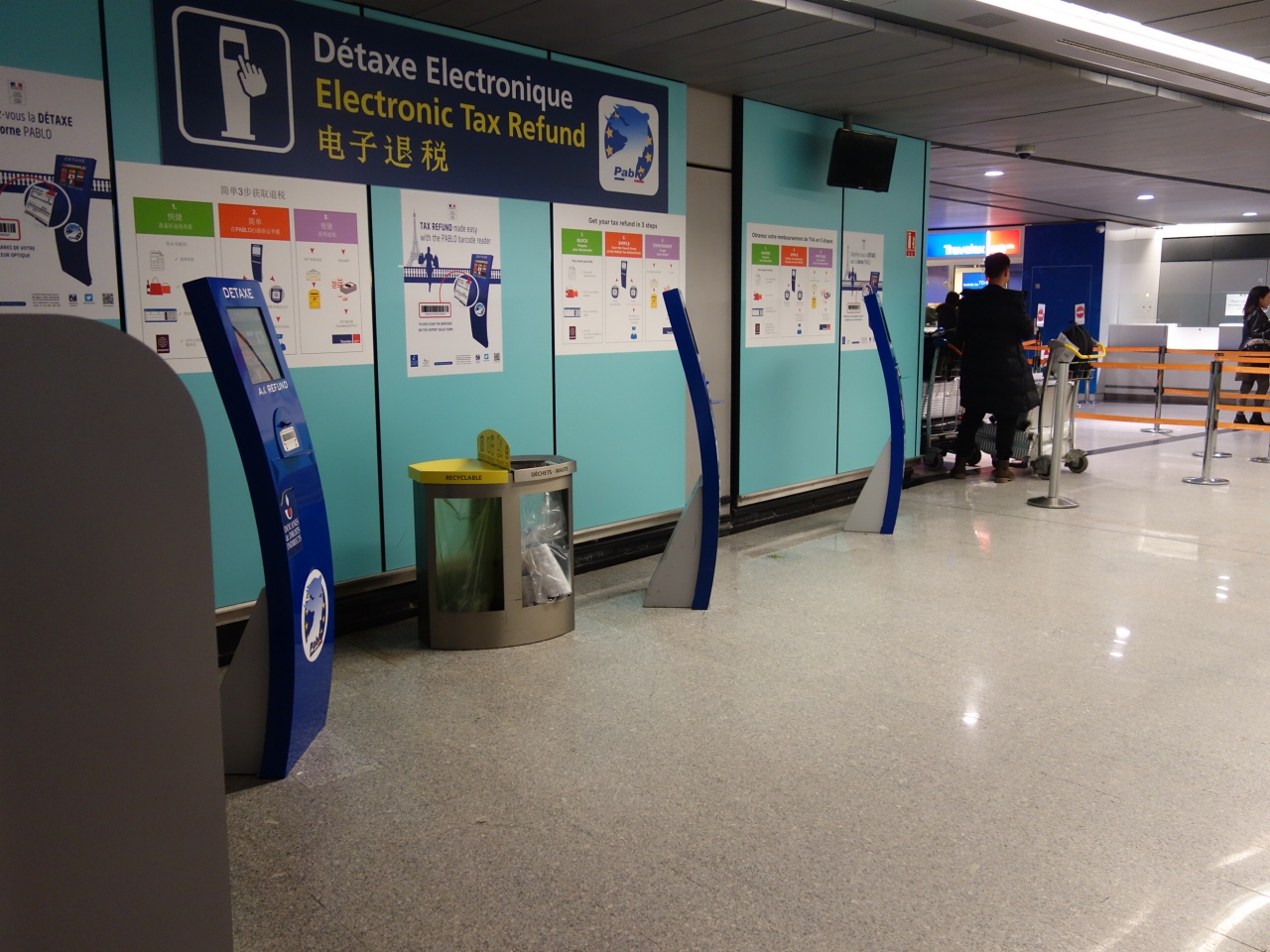 青い機械で日本語を選択して処理すると、あっという間に終わります。バーコードを読ませて、緑のニコちゃんマークが出るとOK。赤が出ると有人窓口へ。さすがに買い物王国です。ギャラリーラファイエットの購入に関しては、投函さえも必要ありません。