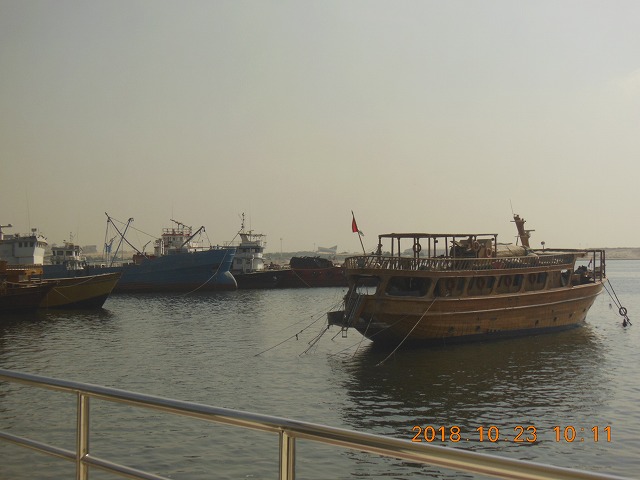 ダウ船で移動中
