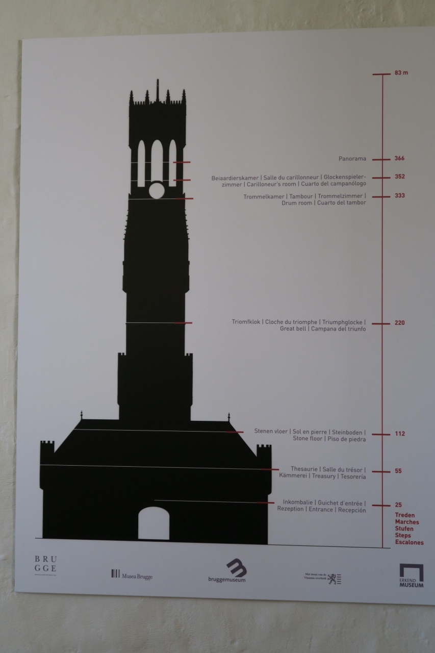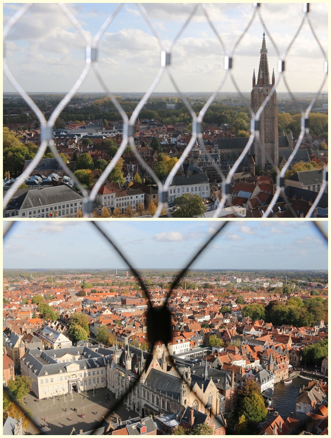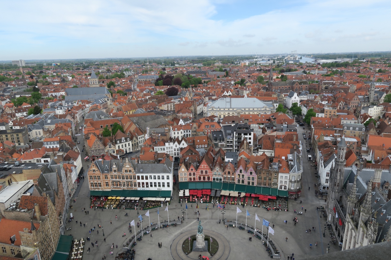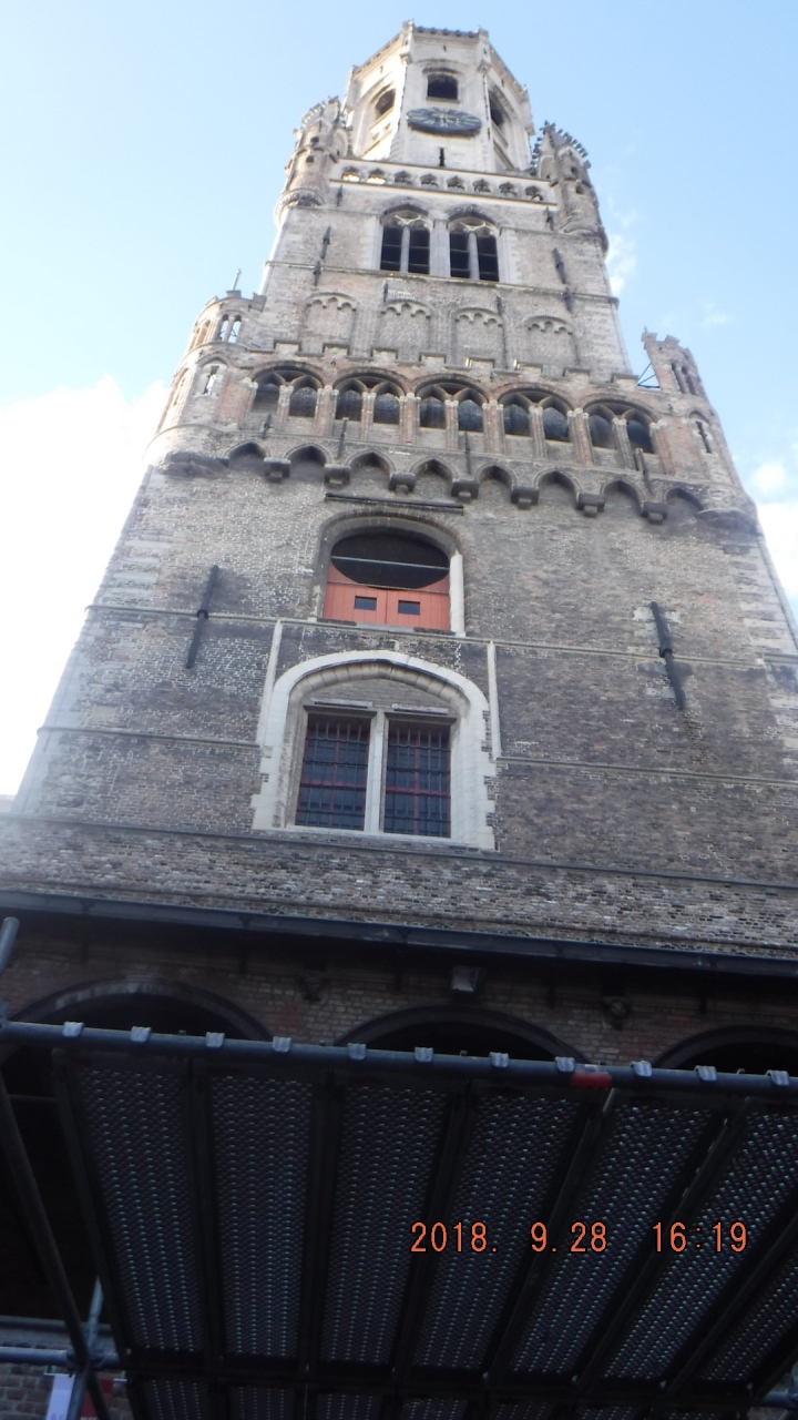 前日に添乗員さんから、この鐘楼には有料だが登れると聞いていたので、翌日個人的に行ってみました。ブルージュ・マルクト広場に面... 続きを読むしたこの建物は堅ろうなのでしょうか、でもちょっぴりと不安はあったものの366段の階段を上ると、そこにはブルージュ市街地や遠くは田園地帯が一望です。面白い事に、入場は制限されていて、2人が降りと来ると2人を入場させている仕組みで、狭い階段を上下する人々の混雑解消の手段でしょう。€10は安いし、シニア割引や1週間チケットなど売っているのにはビックリでした。耳元で鐘が鳴り響くのには閉口でしたが。でもこの体験は記憶に残るものでしょう。 閉じる