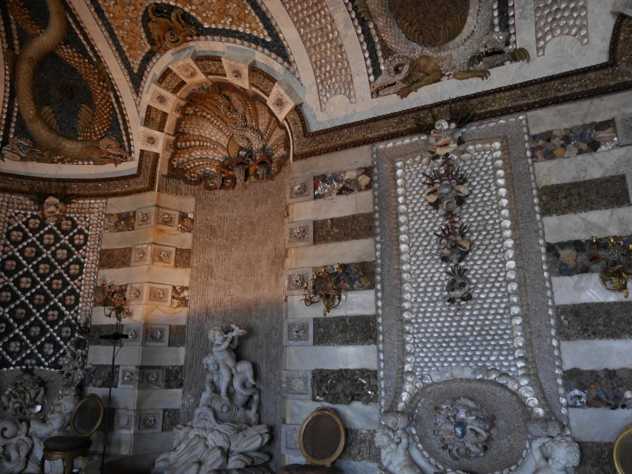 化石や貝殻がぎっしりとはめ込まれています