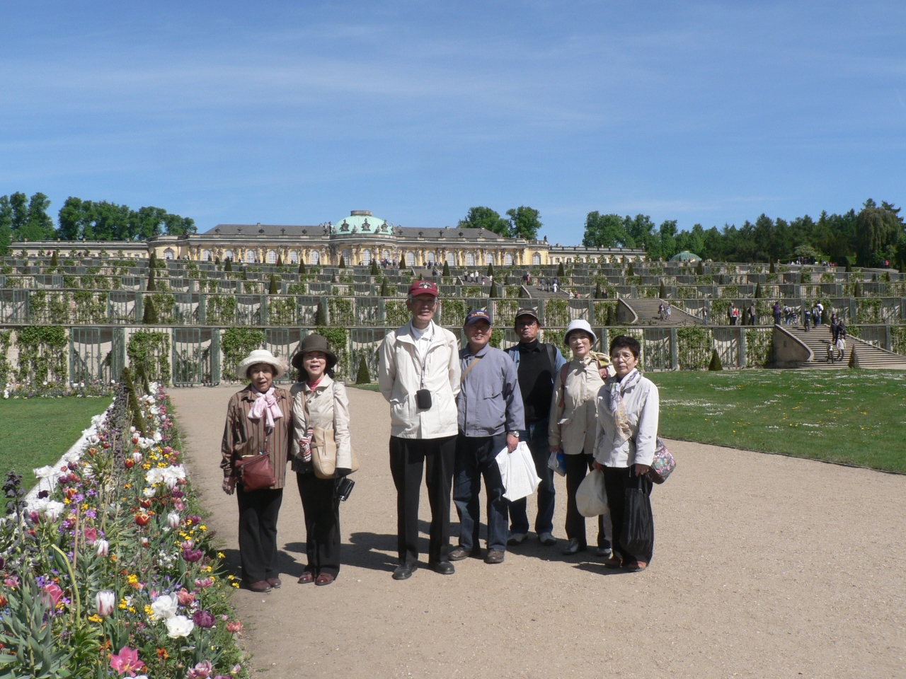 花も満開のサンスーシ宮殿と庭