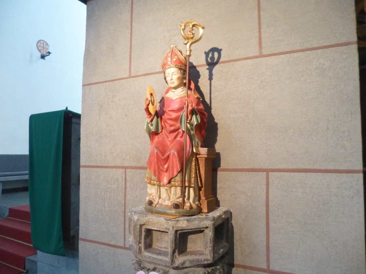 下記の伝説で分かったシャトル(緋)を持った赤い像が印象的で、この像は聖セヴェルスで、教会名にもなっている。