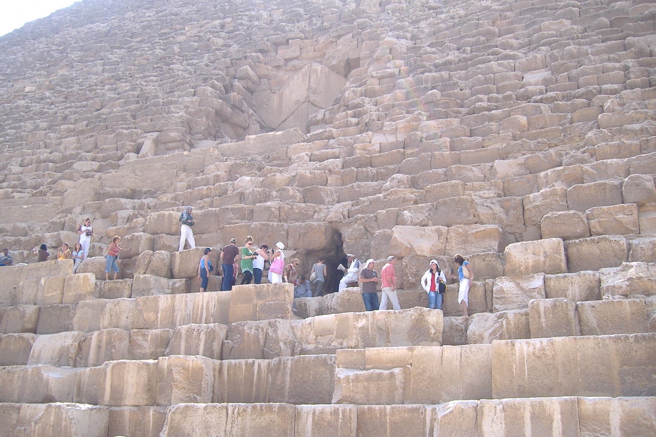 ギザの三大ピラミッドとして有名なクフ王のピラミッド、カフラー王のピラミッド、メンカウラー王のピラミッドがありますが、今回はクフ王のピラミッドの内部に入って見学しました。