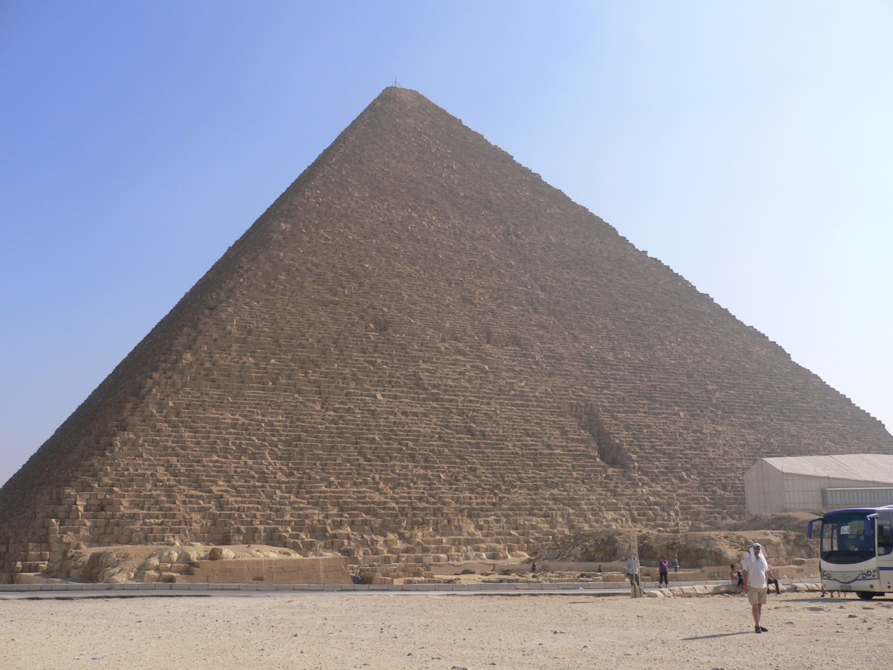 クフ王のピラミッドは、平均2.5トンの石灰石を230万個使って210段積み重ねられており、元の高さは146.6m(現在の高さは138.75m)、1辺の長さは230.37mあるそうです。