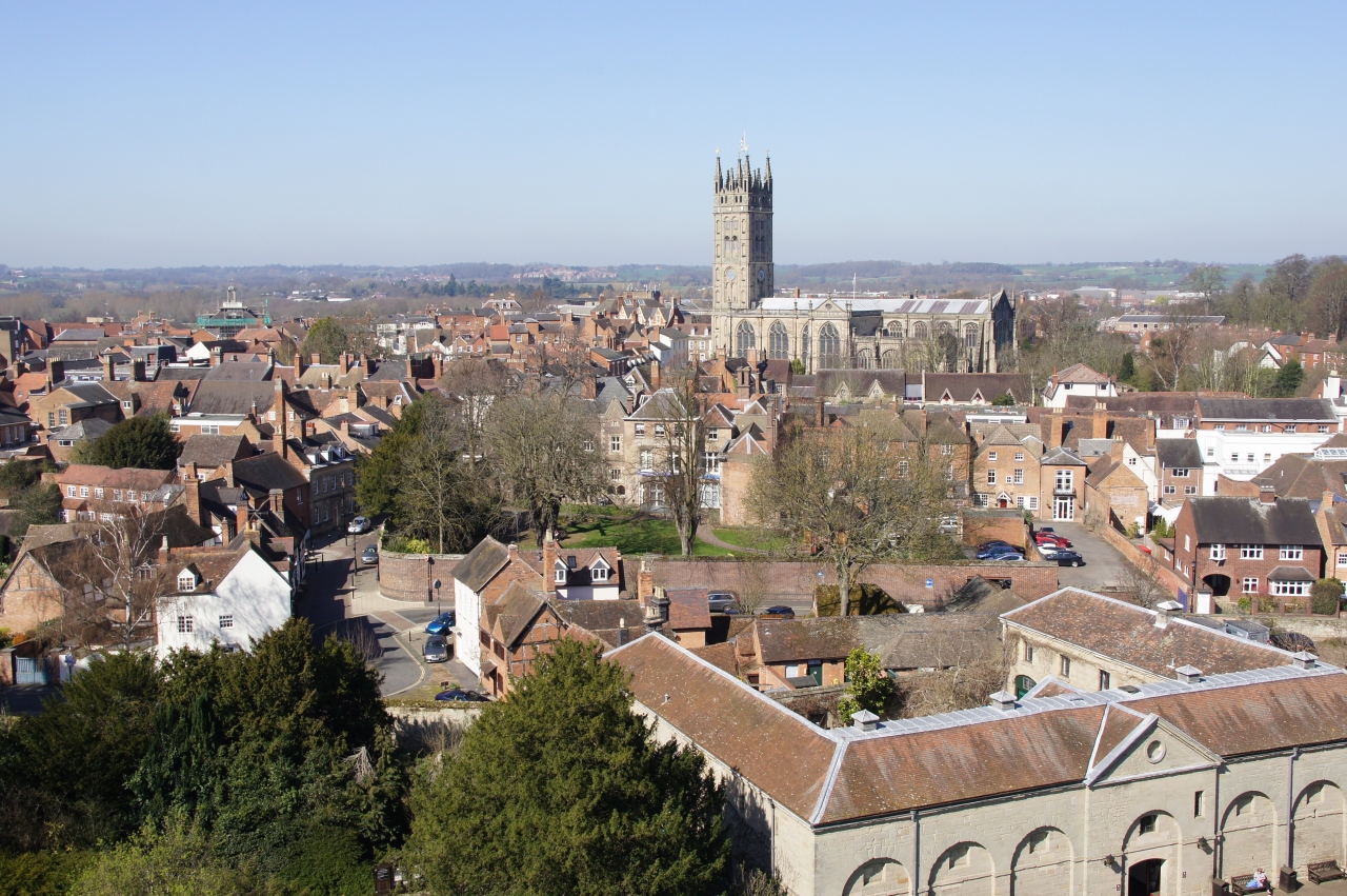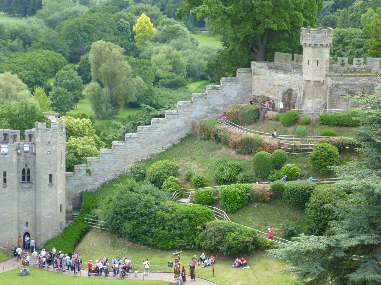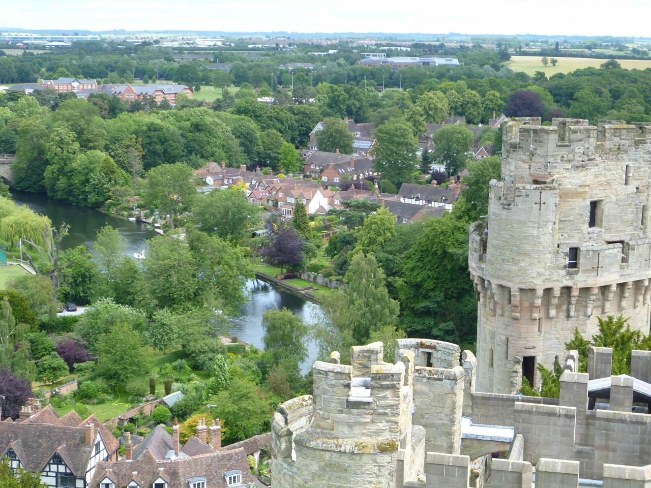 城壁から見たウォーリックの街。セント・メアリー教会が見える