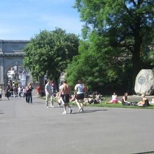 公園外北側の道にはクリスマス・マーケットのゲートも。