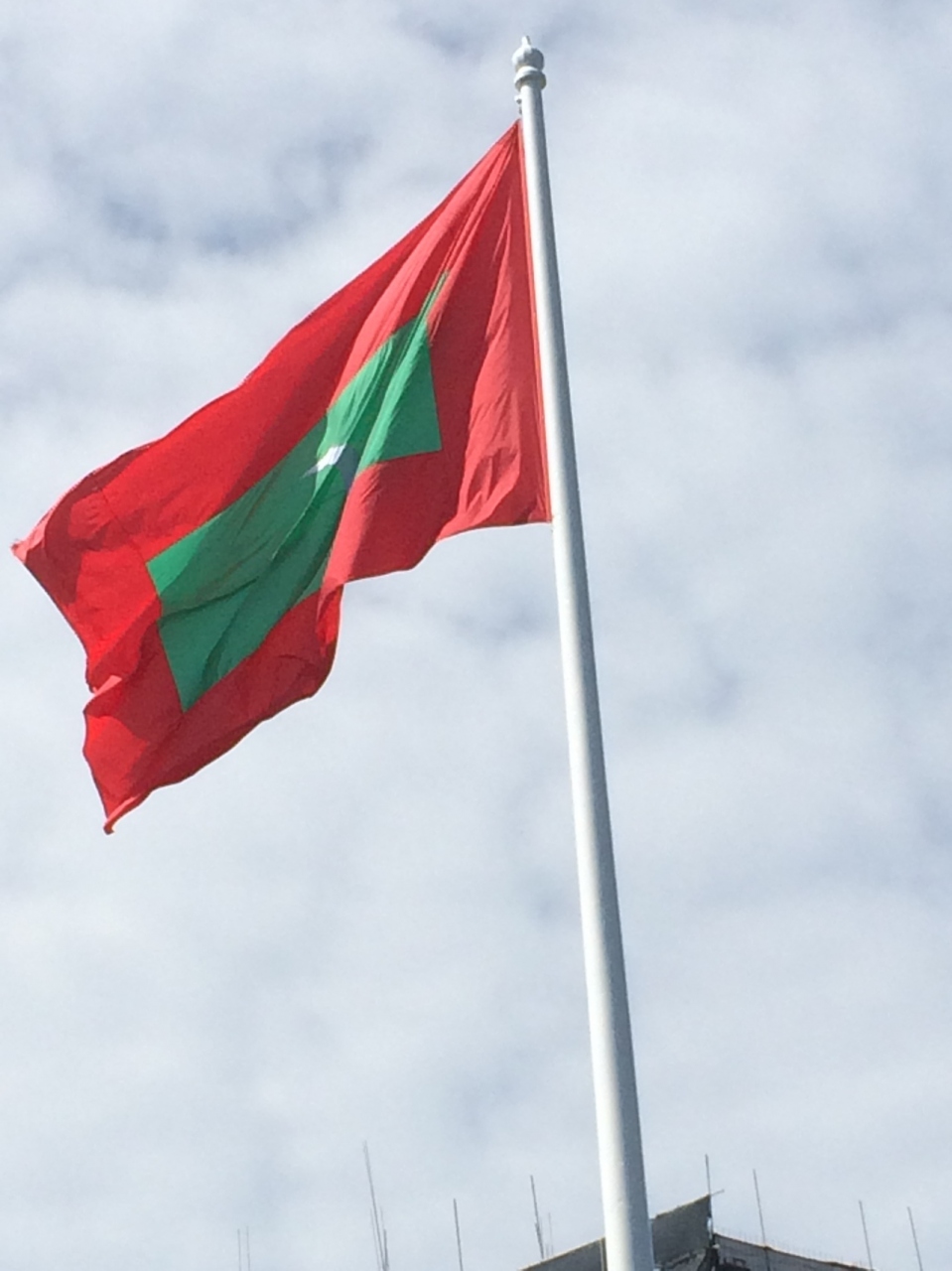 ちなみにモルディブ国旗の赤は、過去から未来にわたる国民の英雄の勇気を表わし、血の最後の一滴まで国家に捧げることを示しているそうです。