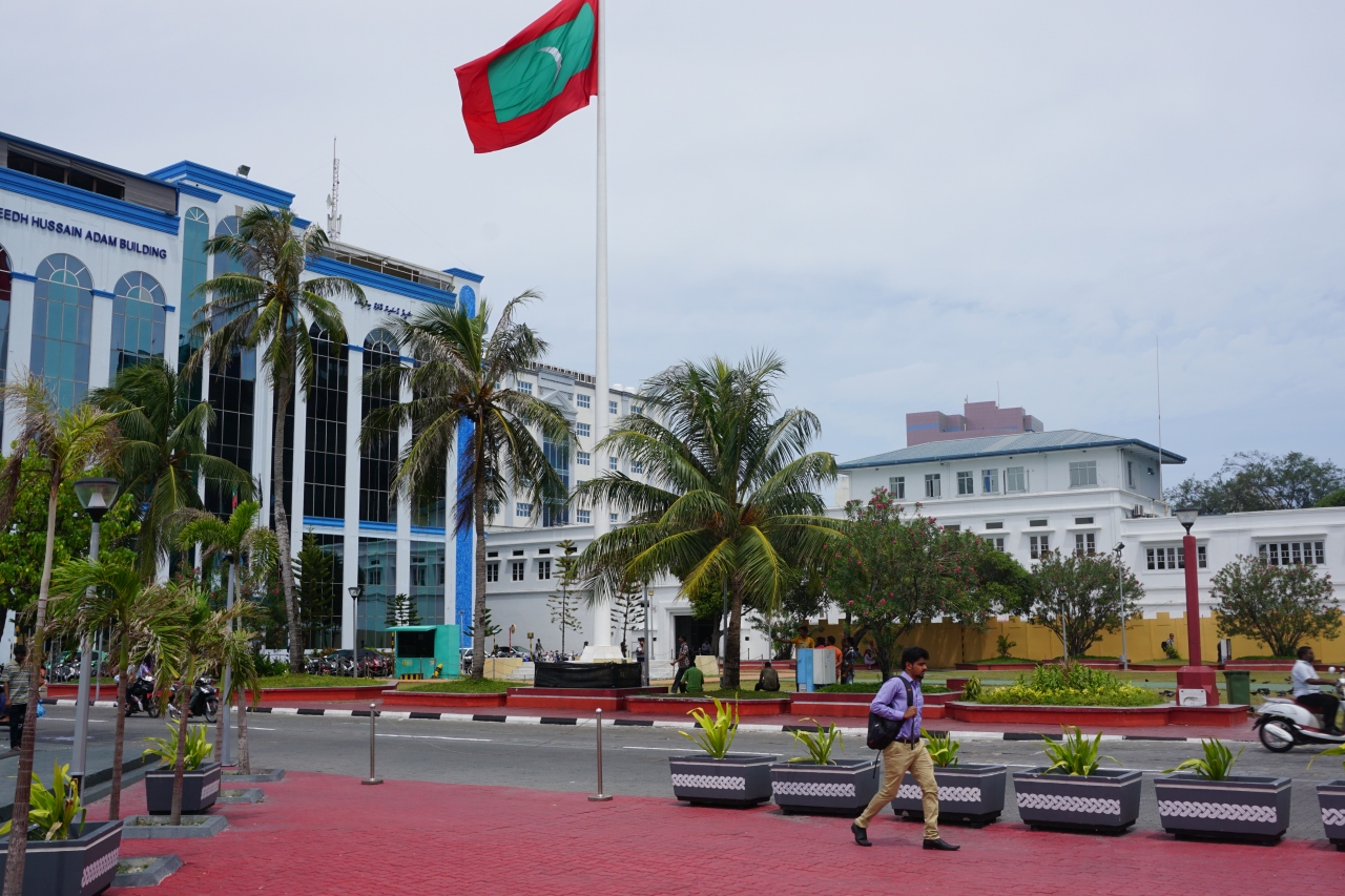 ジュムフーリー・メイダーンは、巨大なモルディブ国旗が翻る共和国広場。