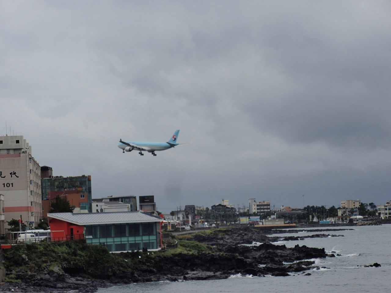 頭上を飛んで空港へ向かう飛行機、迫力満点!