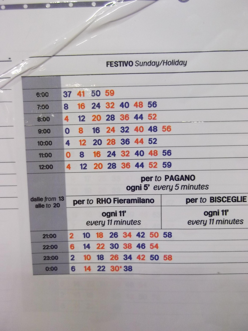 カドルナ駅(A線)の時刻表。平日も本数あります。