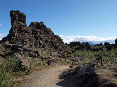SBA-Nordurleidというツアー会社のJewels of the North(SBA−JN)に、参加しました。Go... 続きを読むda foss(神々の滝)、ミンバートン湖までは、他のツアーの客と混成部隊で英語のガイド付きです(11時30分まで)。その後はバスを2台乗り継いで、ガイドなしで運転手が、名所で降ろしてくれて、30分とか1時間とか自分たちだけで適当に回ります。英語が大体しか分からないので、ガイドなしというのも気楽でよかったです。ただ、集合時間をしっかり確かめましょう。日本で調べた時、ランチ&ディナータイムがあるということでしたが、実際にはディナータイムしかなく、飛行機でもらったチョコバーで食いつなぎました。ミンバートンの店で急いで食べ物を買うか、あらかじめ持っていかないと夜8時くらいまで、店もありません(ただしトイレはある)。でもさすがに北の宝石、すばらしい景色が広がっています。ぜひオススメ!ちなみに写真は奇岩フリョーザグレッタルです。最初に現れるこの岩、まさに珍(?)岩。ディナータイムはHusavikというホエールウォチングで有名な町。運転手の言うことがよくわからなかったのでバスが止まったガソリンスタンドのカフェで待望の食事をしましたが、歩いてすぐのハーバーにレストランやホエールウォチングの船があり、そこでも拾ってくれると言っていたのがバスに乗ってからわかり、そっちで食事を取ればよかったと自分達の英語力の欠如とサーチ力不足を嘆きました。