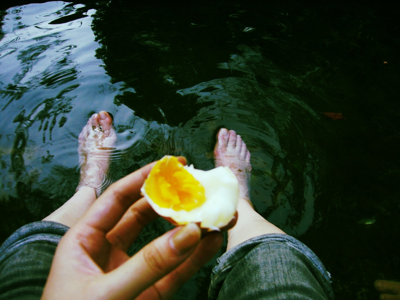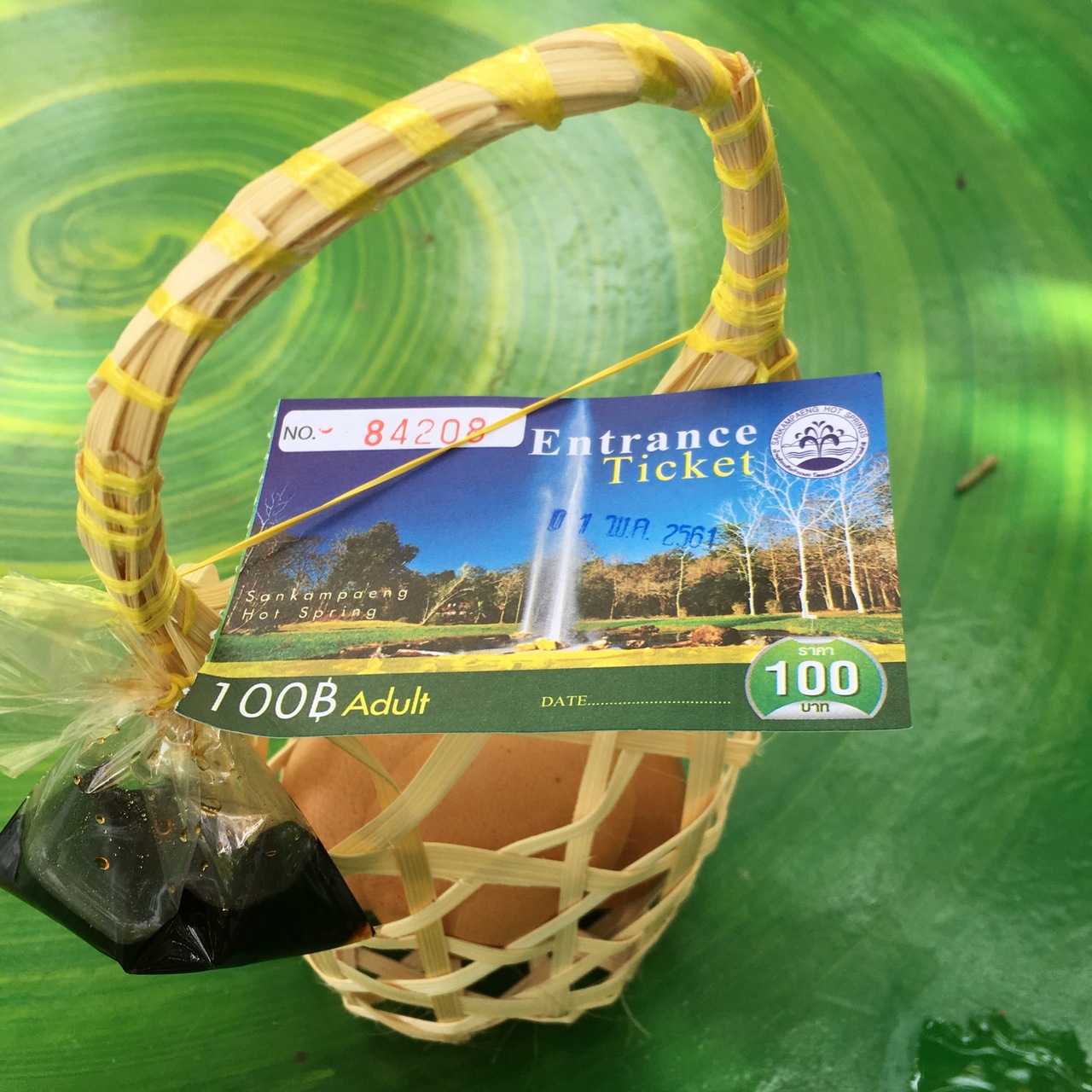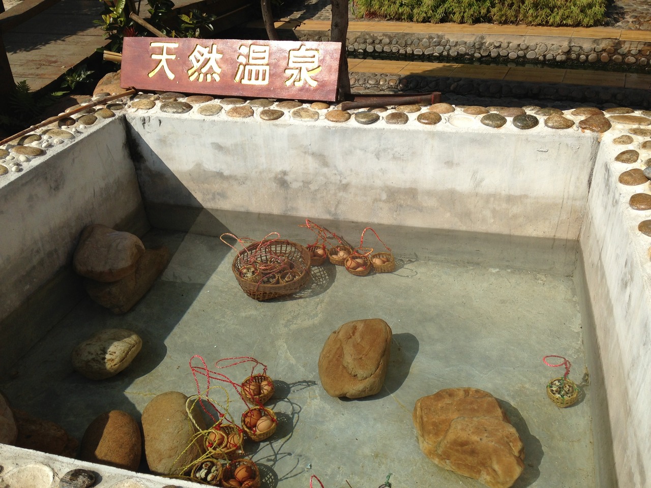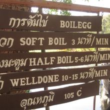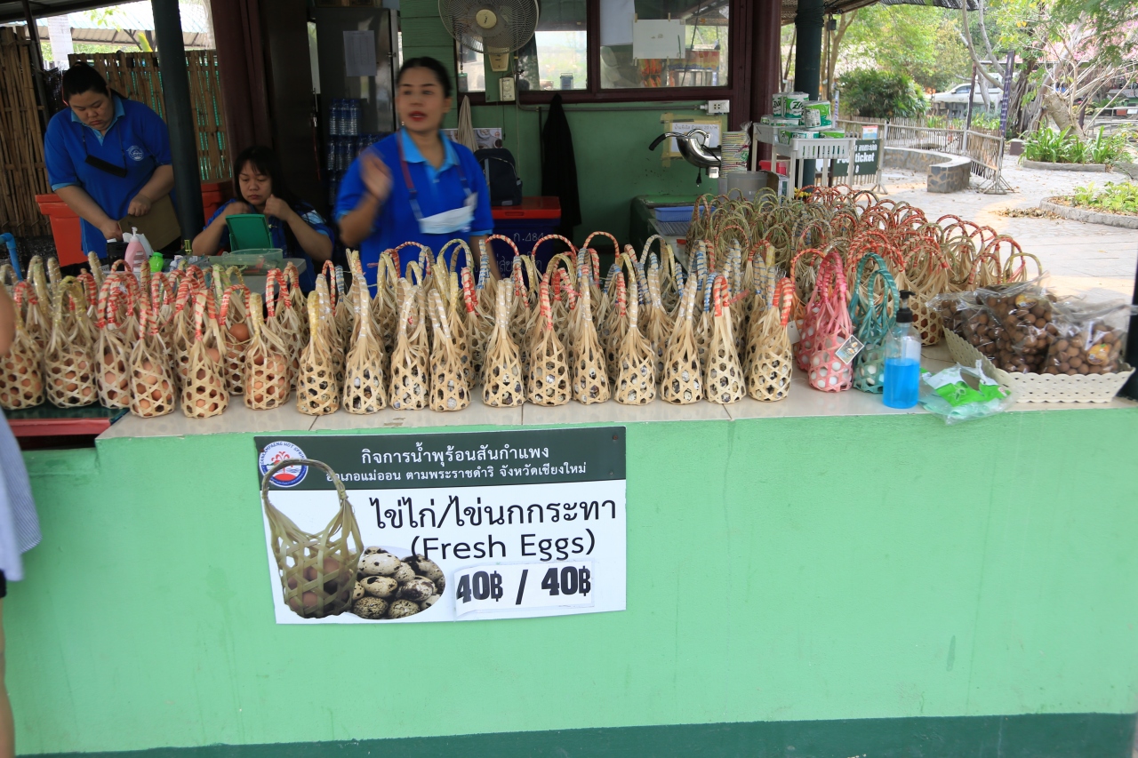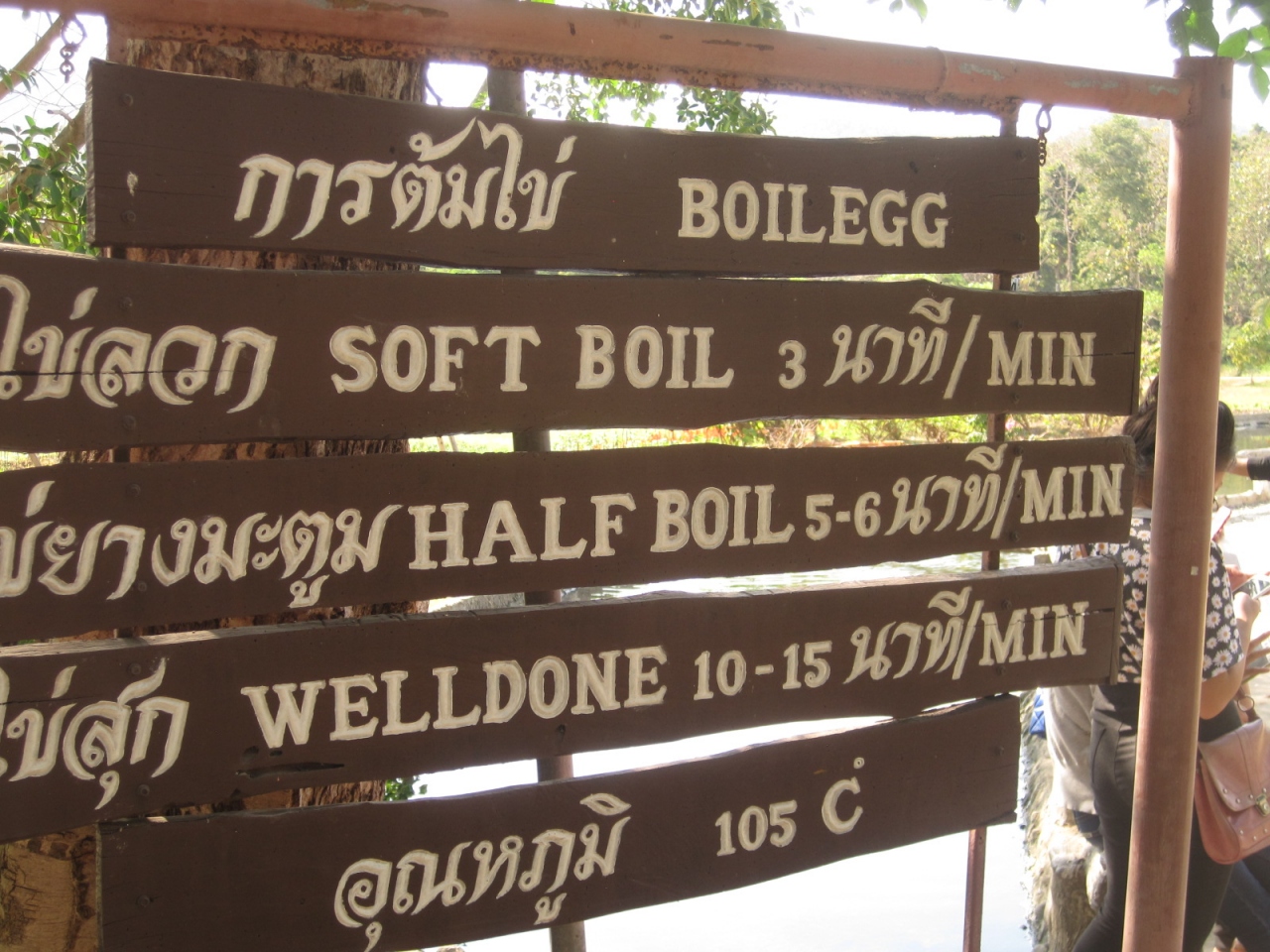 温泉は硫黄臭が強く、温度はかなり高いです。バスタブに自分でお湯を張るのですが、間違えて高温水を入れ過ぎ、適温にするのが大変でした。湯量が豊富なので、あっという間にバスタブがいっぱいになります。温泉卵は20THB。