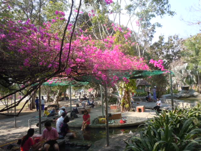 サンカンペーン温泉は、タイ人にも人気のスポットです。