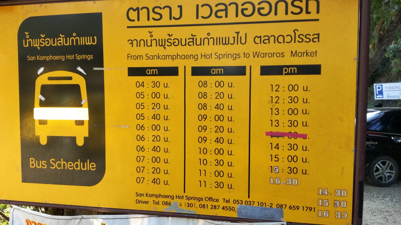 チェンマイ旧市街から40km程離れた山の中に広い施設があります。公園や温泉プールもありますが、私達はプライベートバスを借り... 続きを読むました。バンガロー1棟(バス、トイレ、ベッドルーム)が1時間300THBです。温泉施設(園内)に入るには最初にゲートで100THBの入場料も必要です。