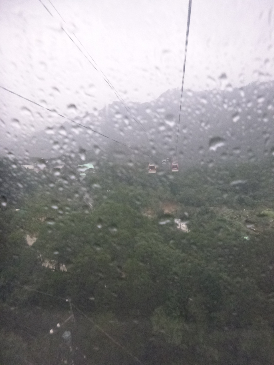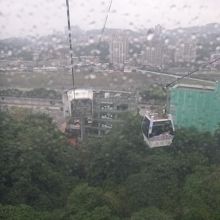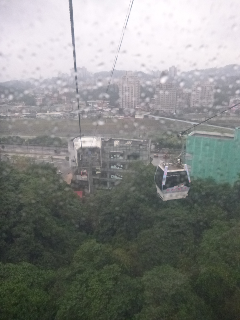 乗る前に動物園で散々濡れたので車内では寒い。暖房など何もないのでかなり冷えました。頂上の猫空駅までは30分ほどの旅ですが、雨で景色もあまり見えず寒いだけでした。