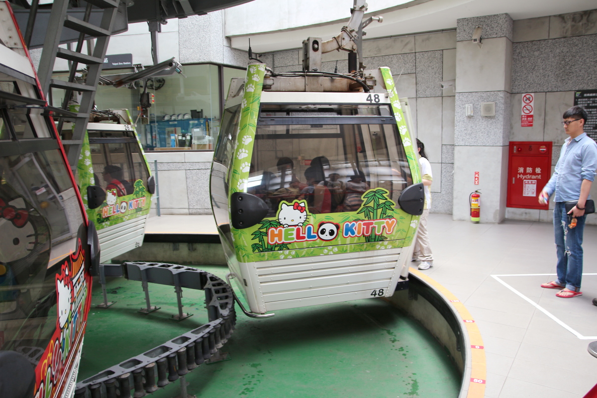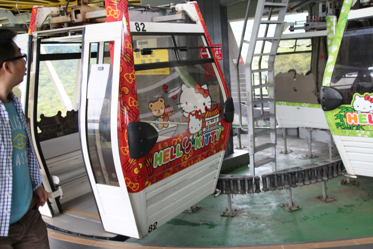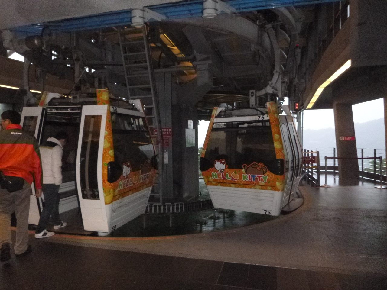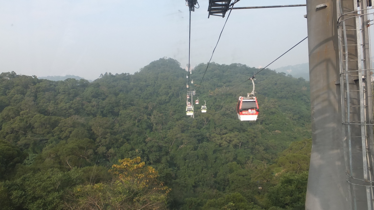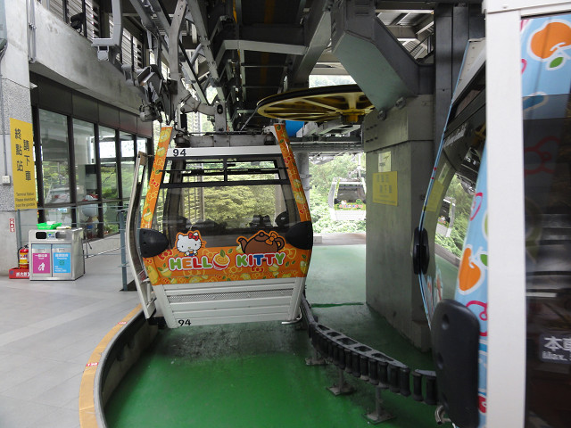 平日の午後だったので比較的すいていて、往復ともに待ち時間は15分ほどでした。普通のゴンドラは8人乗りで、7~8人までグループごとに詰め込まれます。日本人は私達のみで、他は台湾人か中国人のカップル3組でした。