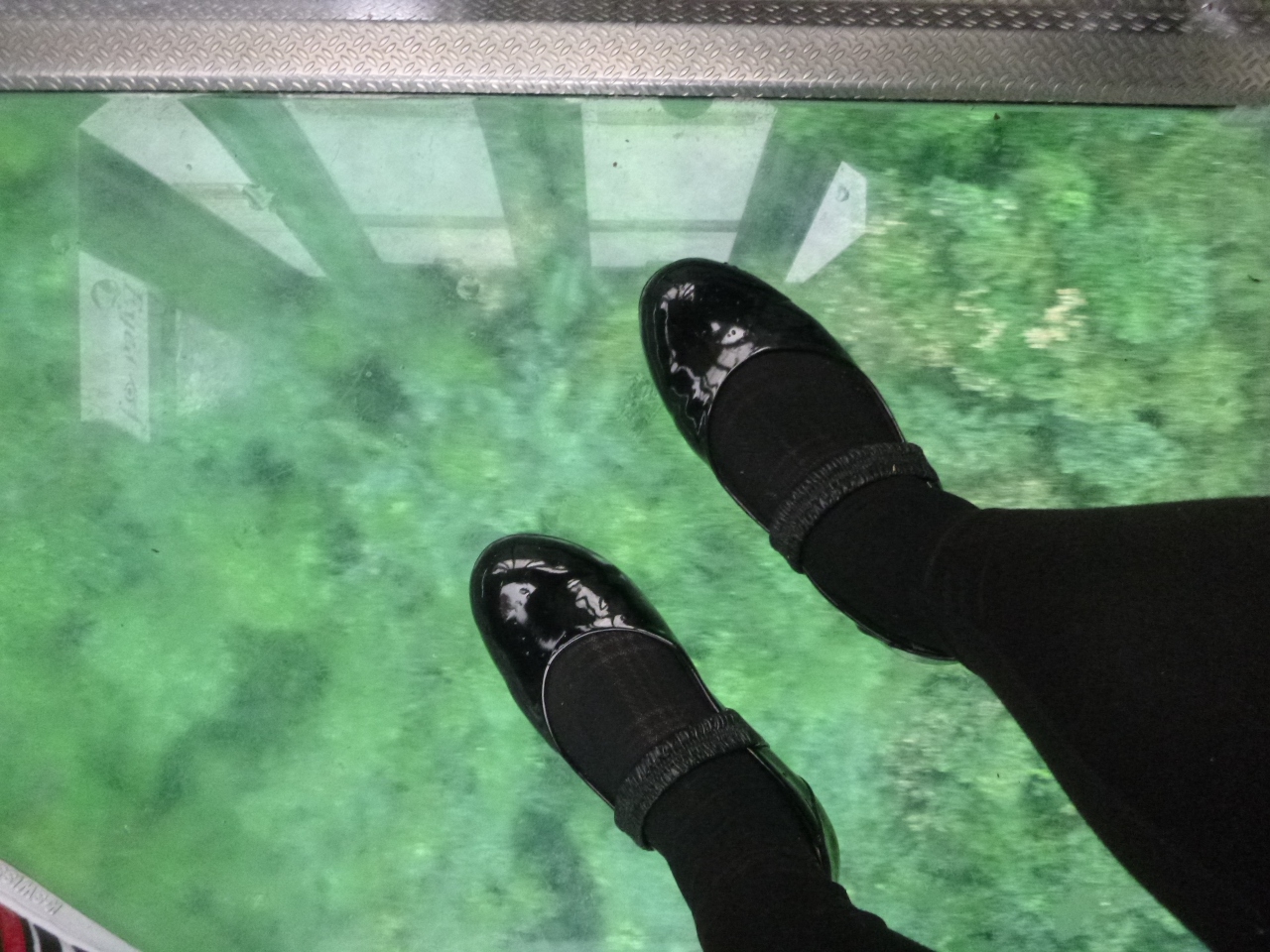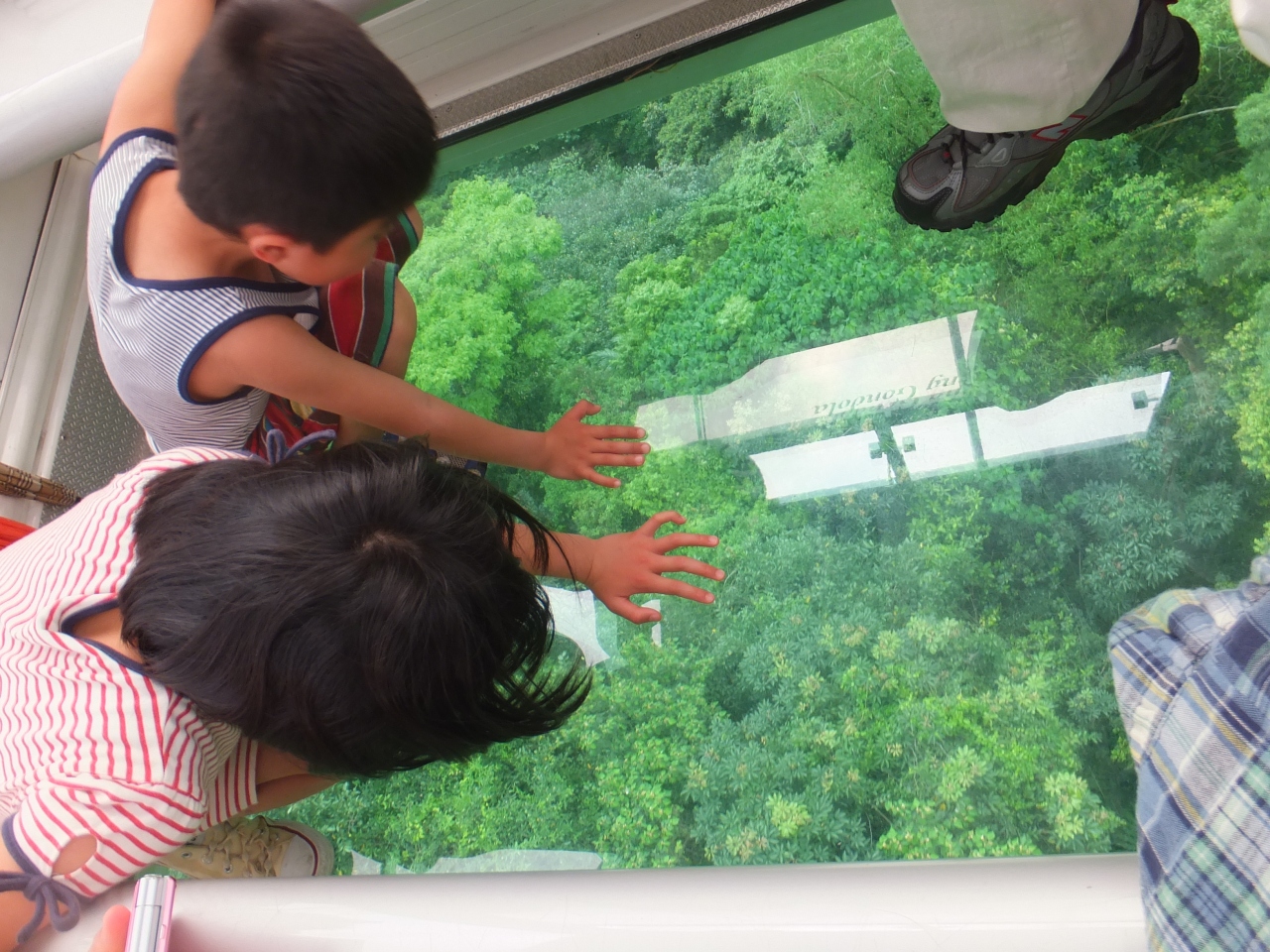 帰りのゴンドラはスケルトン!ラッキー!足元がスケスケでスリルを楽しめます。