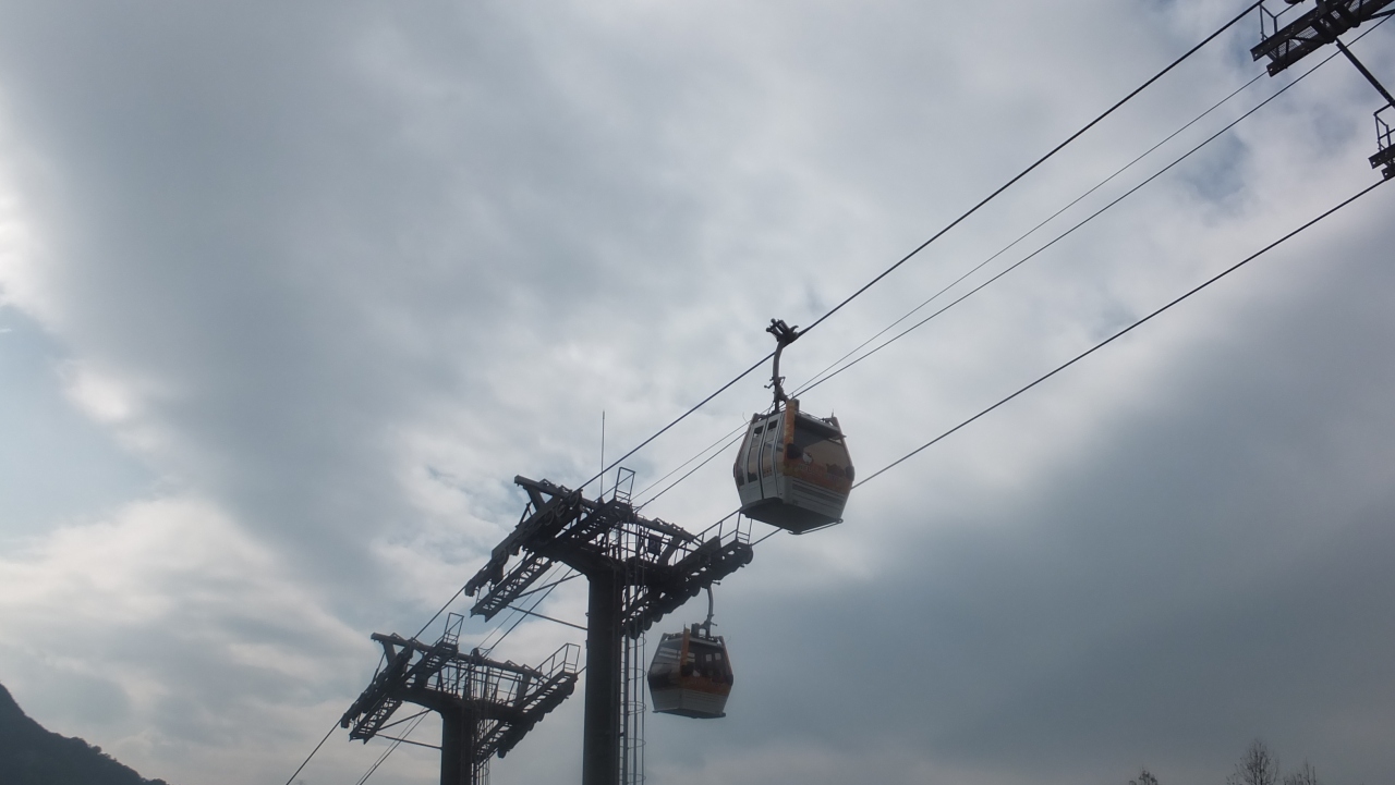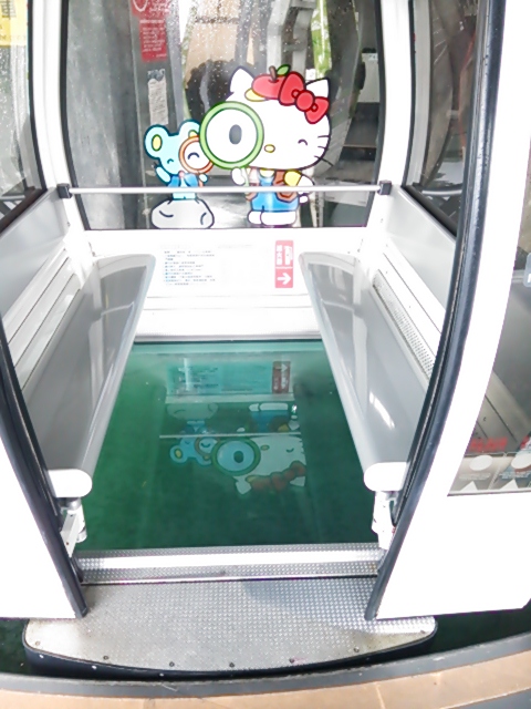 ロープウェイは、... 続きを読む一般車両と「水晶車両」に分かれていますが、水晶車両というのは、床が強化ガラス製の「透明キャビン」。運行当時は130基あるゴンドラの内1基だけだったようですが、今はもう少し多いようです。