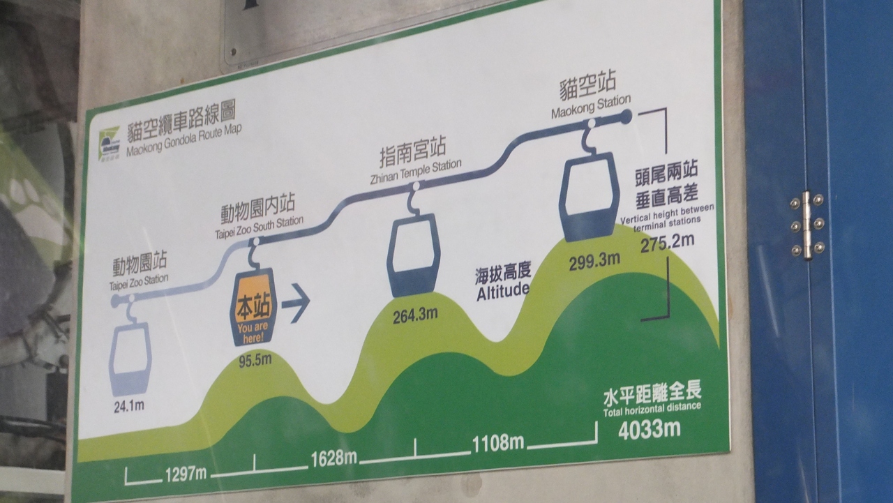 MRT文湖線(茶色)終点の「動物園」駅から、徒歩5分ほどで、ロープウェイ「動物園」駅まで行けます。