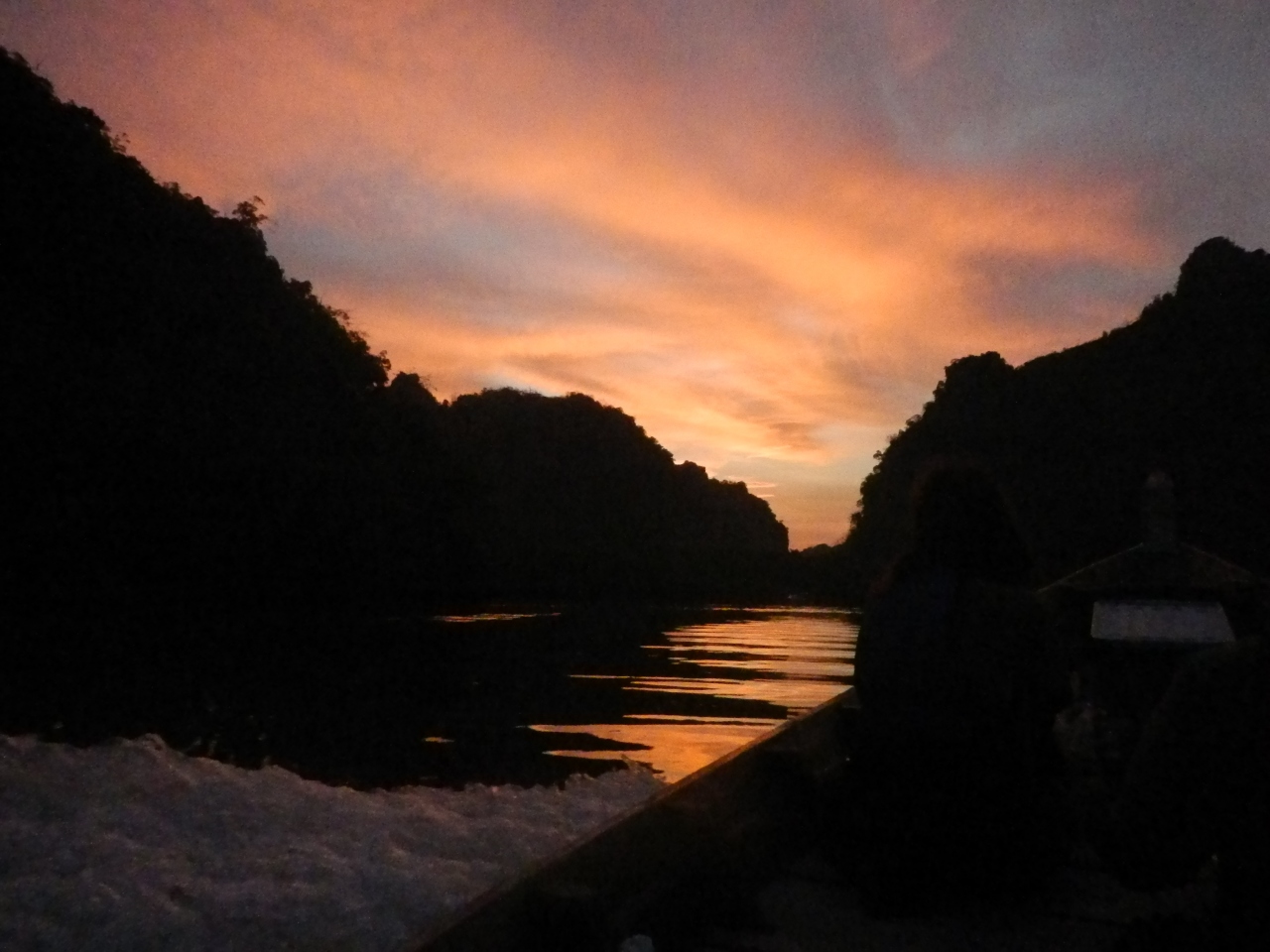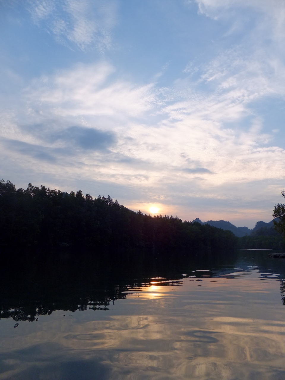 マングローブの木漏れ日がキラキラと輝く水面、そして夕陽が水面に映り込み、同じようにその色を変えていく・・・それはもう息を飲む美しさです。