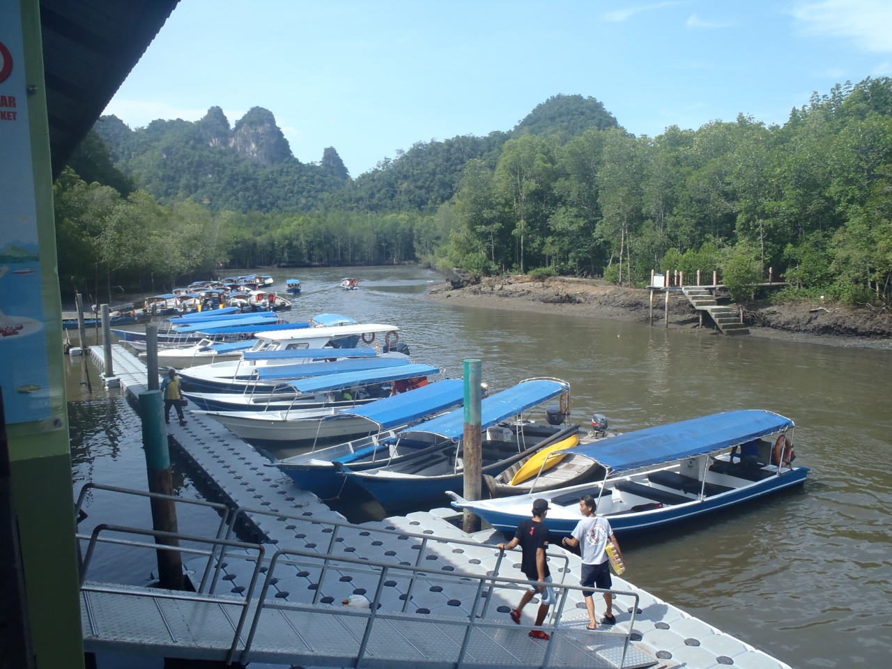 で、レンタカーを滞在中借りていたので現地に乗り付けました。いくつか乗り場があるようで、フォーシーズンズの先の乗り場まで行ったのですが、乗り場の先の土産物屋の中の案内所で値切ったところ、2時間コースで350が170リンギット/一艘まで落ちました。