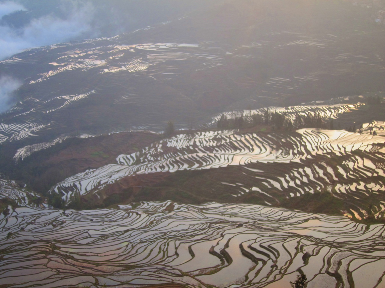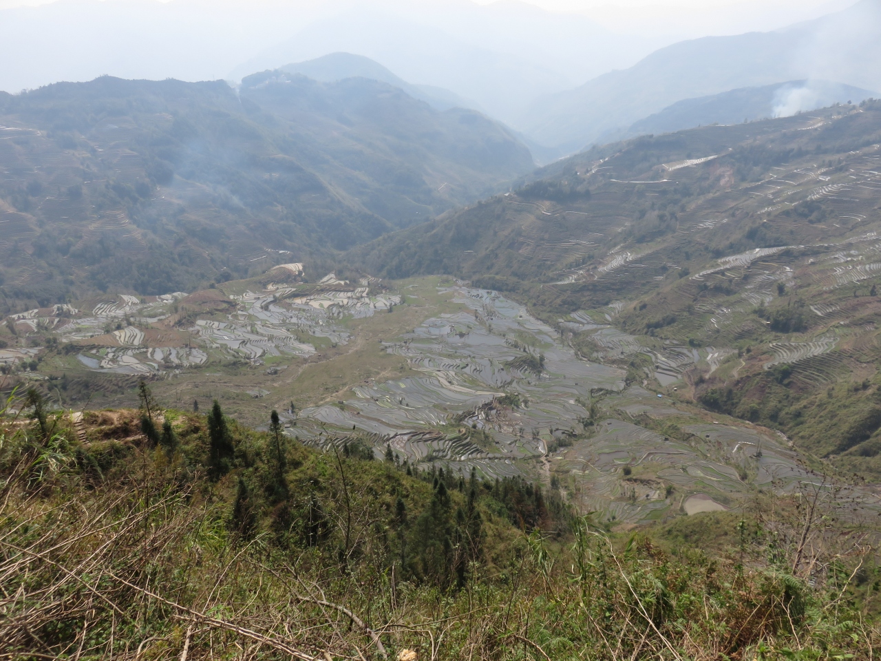 山の麓からてっぺんまでびっしりと棚田で敷詰まっています