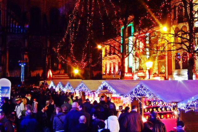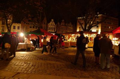 グランプラスから、聖カトリーヌ教会広場周辺で開催しているクリスマスマーケットについて教えて下さい。