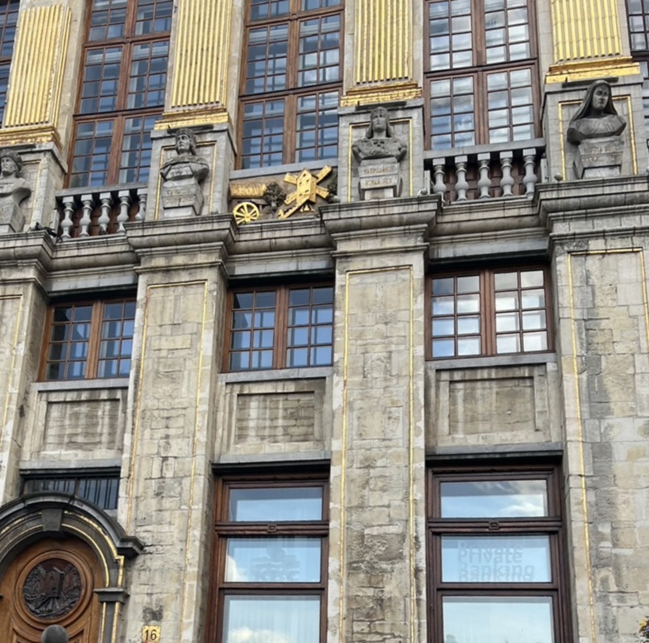 中央駅からグランプラスに向かった時に、広場に入ってすぐ左手にある瀟洒な建物です。