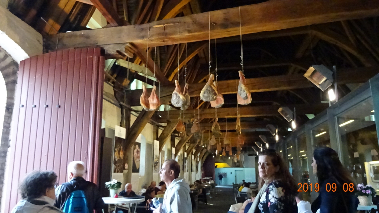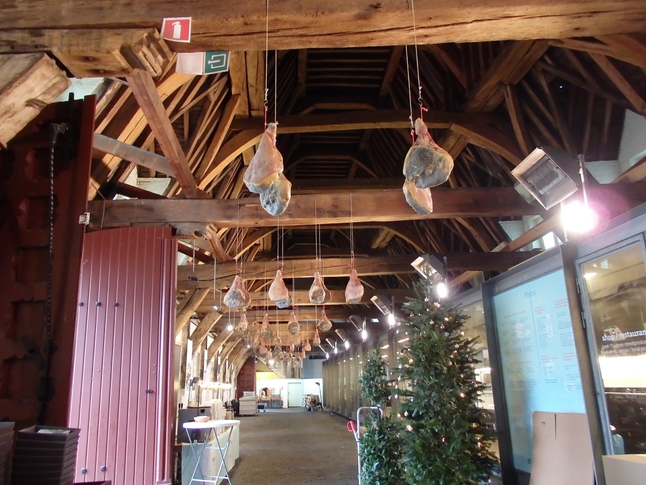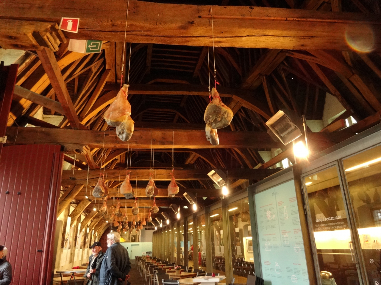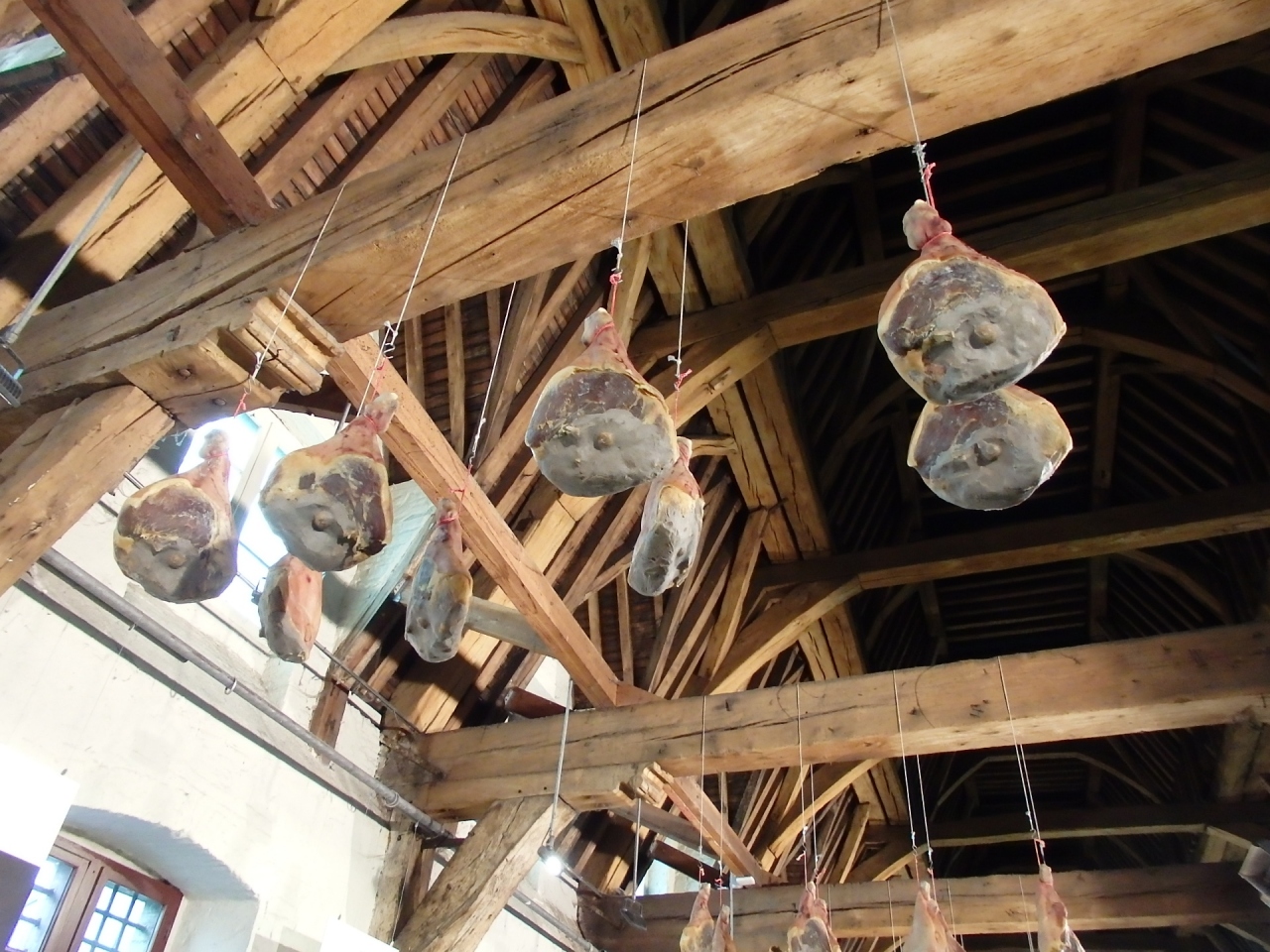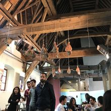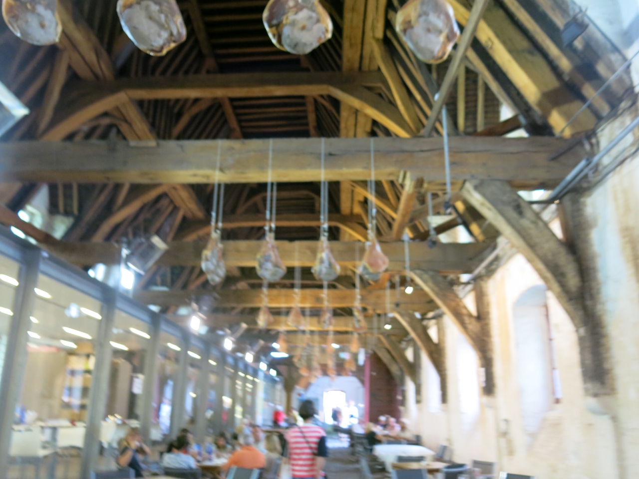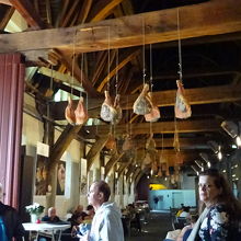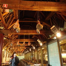 梁に吊るされている生ハム(レプリカ)が中世の雰囲気を醸し出しています