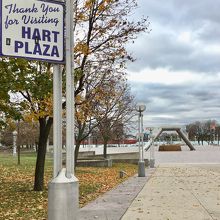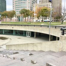 広場に中央に配置された「ホーラスEダッジ噴水」は札幌のモエレ沼公園(1880000m2)の「テトラマウンド」を思い出させる作品でした。