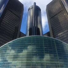 日中は太陽の光が窓ガラスに反射し、ビル全体がキラキラ輝いて見えます。デトロイト川沿いには遊歩道が整備されていて、ランチタイムや夕暮れの時間帯にはたくさんの人たちがジョギングや散歩を楽しんでいらっしゃいます。
