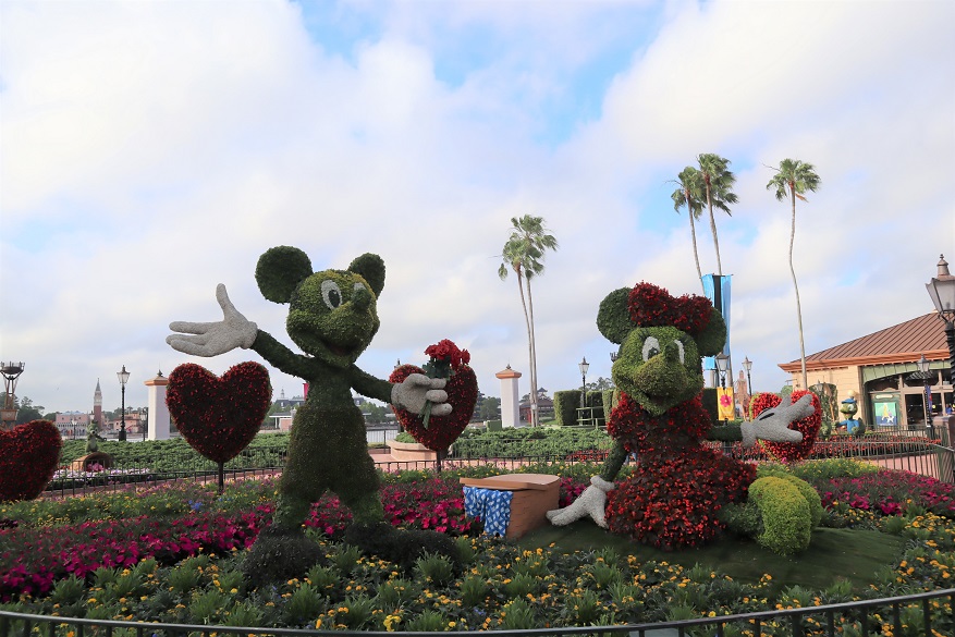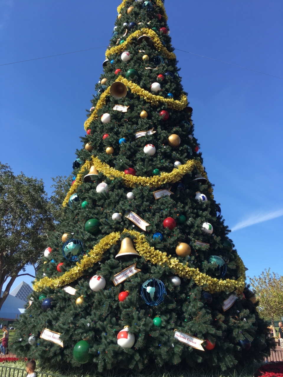この時期は、ディズニーキャラクターの形をした木も多く飾られているので、普段はディズニー色を感じないエプコットですが、この時期はディズニーに来た!という感じがすると思います。写真映えもします!