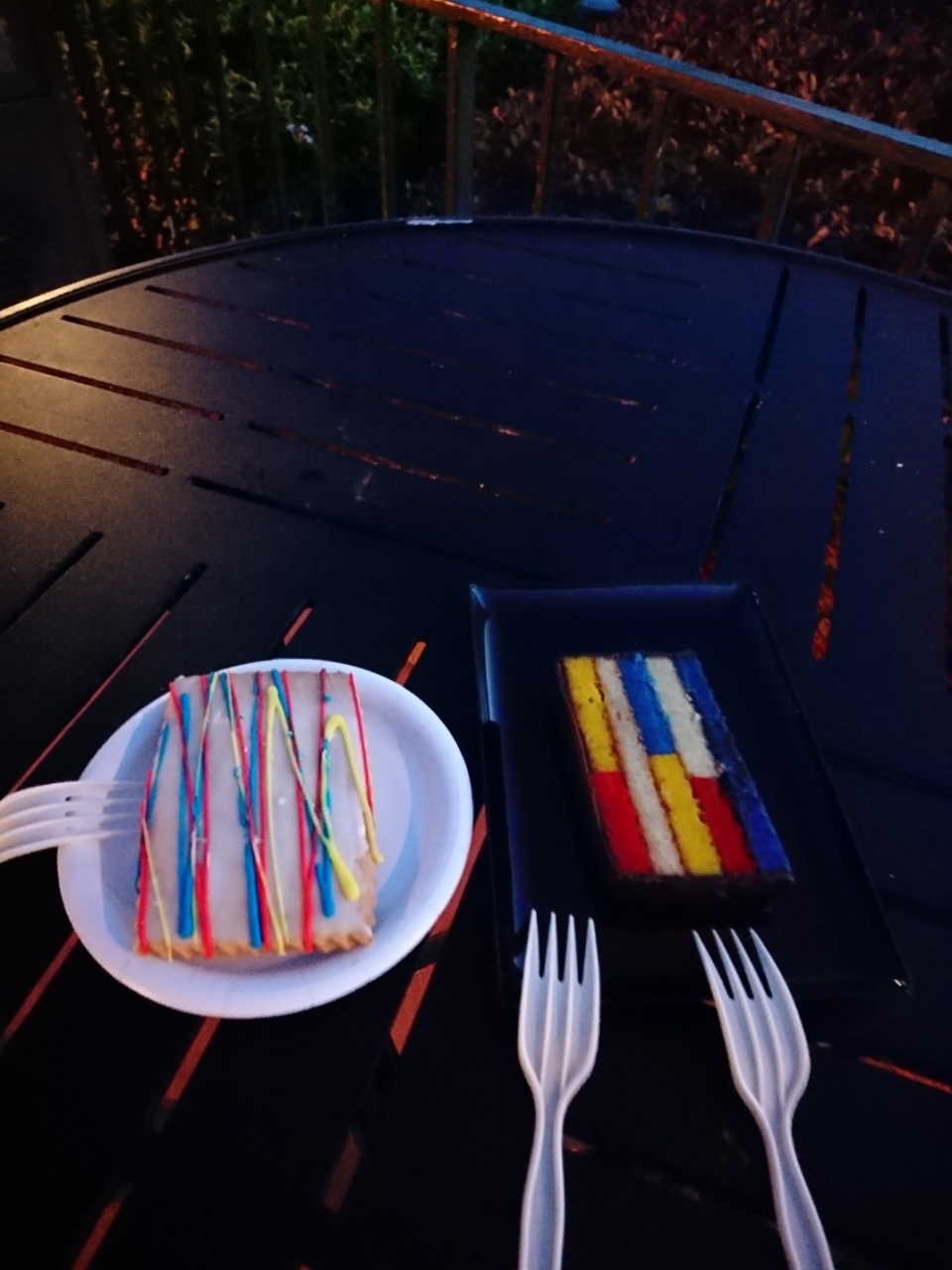 私達はイギリス館のフィッシュアンドチップスのお店近くのテラスで観ました。