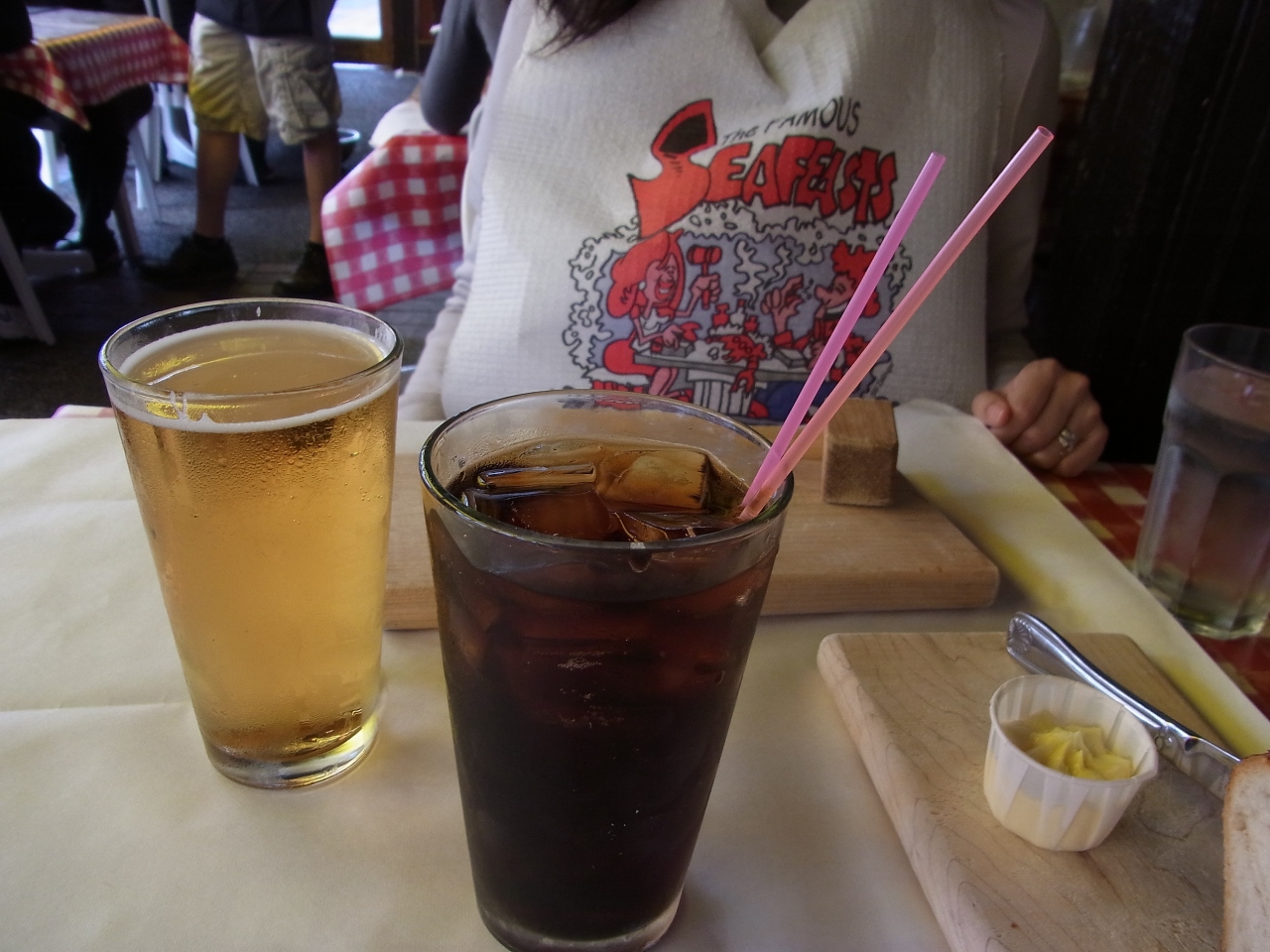 メニューはアメリカらしく、どれもボリューム満点。単品メニューも豊富に揃ってましたが、二人で頼むと色んな種類が食べられそうになかったので、何種類かのシーフードが入っているセットメニューにしてみました。セットメニューでも内容の違いにより数種類ありました。