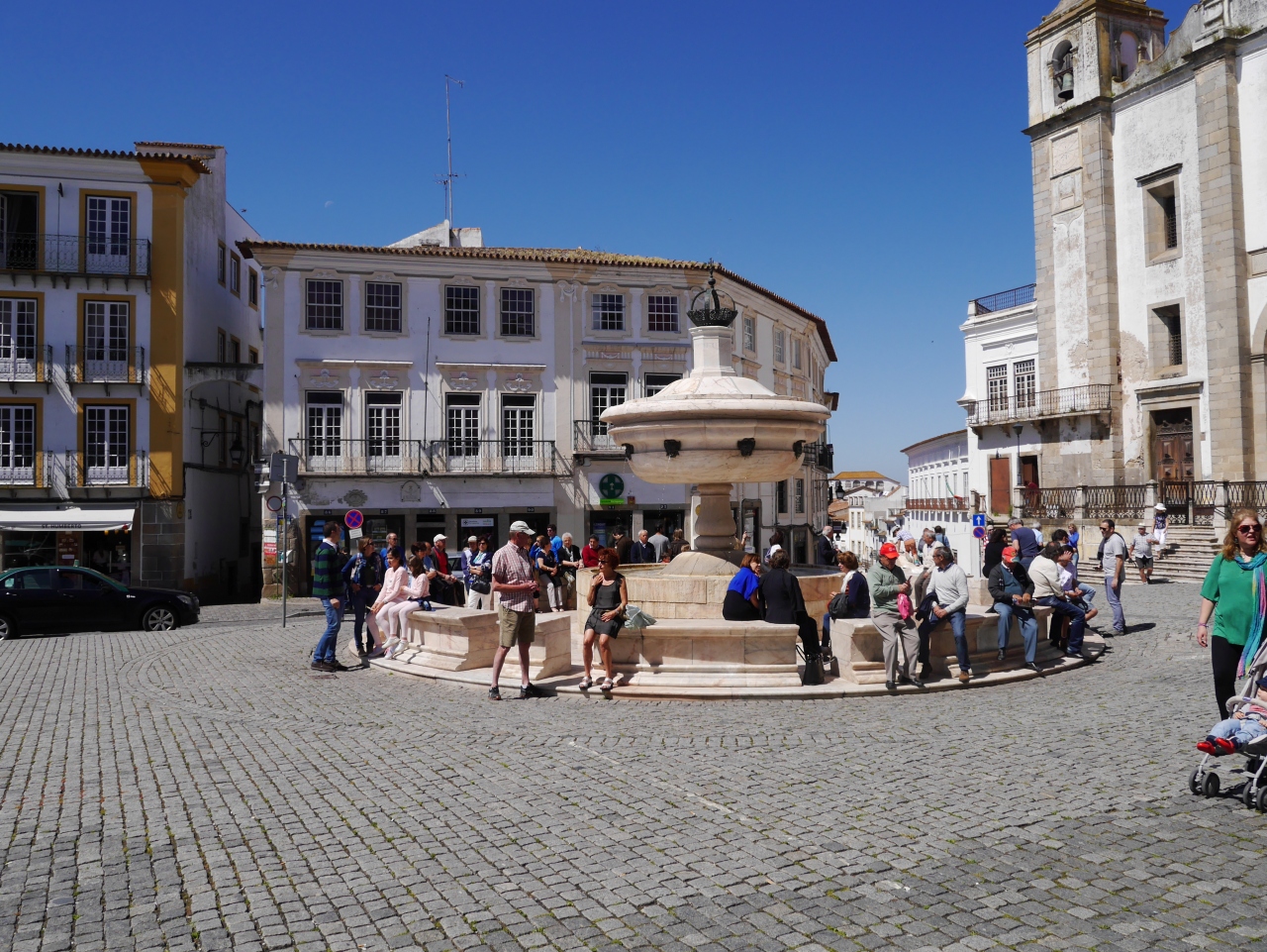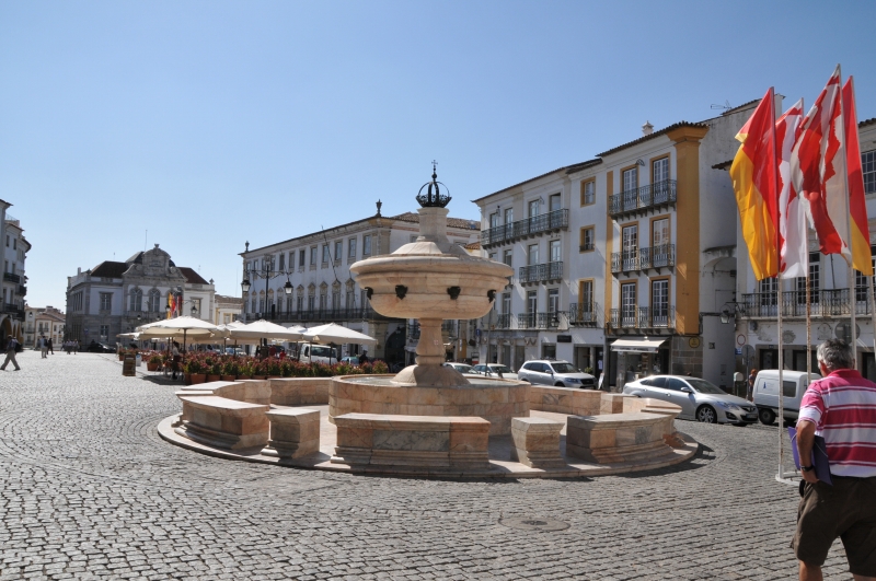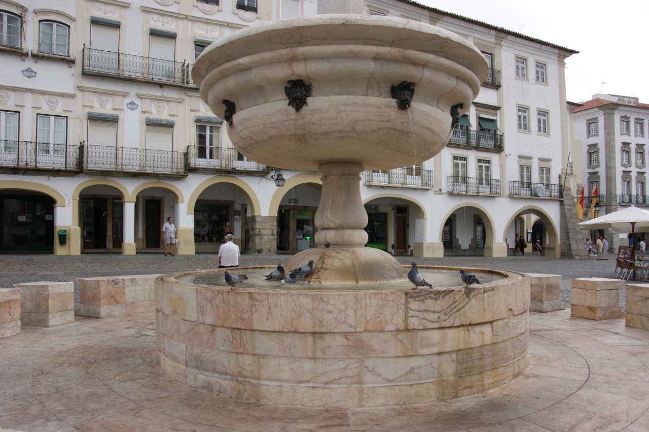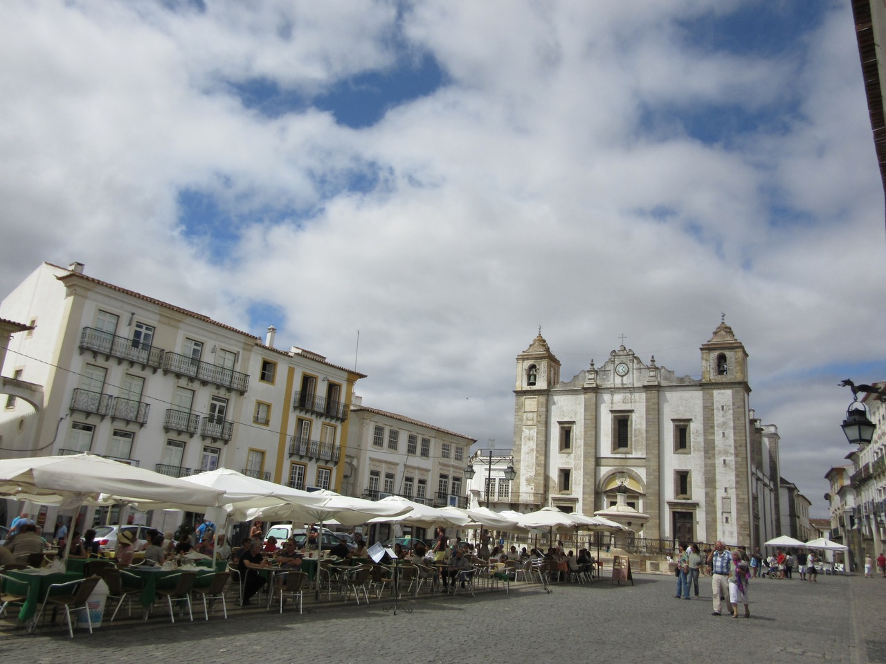 街の中心に位置する広場で、街の観光をしていると、日に何度も通ることになる広場。静かなエヴォラの町ですが、ここは朝から晩まで... 続きを読む賑やか!地元のおじいさん達は、日がな広場でお茶を楽しんでいます...。広場には、オープンテラスのカフェやレストランがあり、冬場は広場にスケートリンクも出現します。広場をぐるりと取り囲むようにショップが軒を連ねているのですが、回廊のように屋根つきなので、雨の多い冬季でもカサをささずにショッピングが楽しめます。タクシー乗り場や、バス停もあり、エヴォラの交通の中心でもあります。クリスマスシーズンには、この広場を中心に、各通りにイルミネーションの飾りつけが行われ、より一層賑やかで楽しい雰囲気に包まれます 閉じる