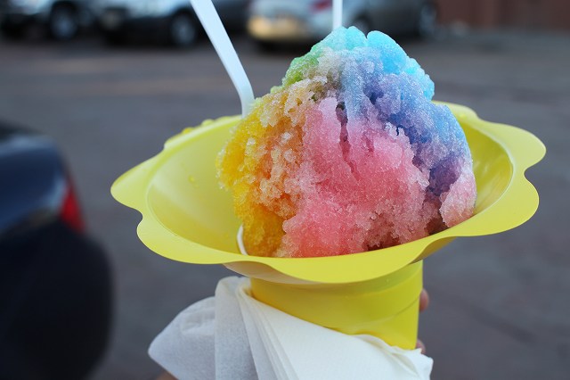 肝心のシェーブアイスですが、レインボーフレーバーを注文。