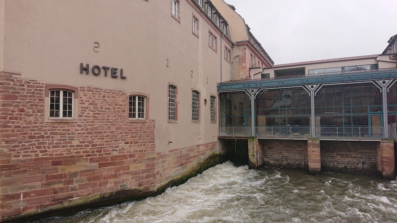 また、イル川に設けられた堰がある場所なので、クルーズ船が閘門(こうもん)に入って水位が変化する様子を間近で見られるスポットでもあります。運よくクルーズ船がやってきたら、その様子を観察することをオススメします!