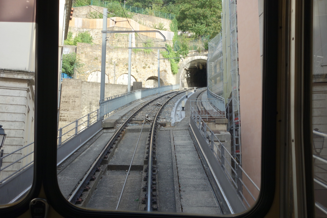 フニクラはかなりキツイ勾配を登っていきます