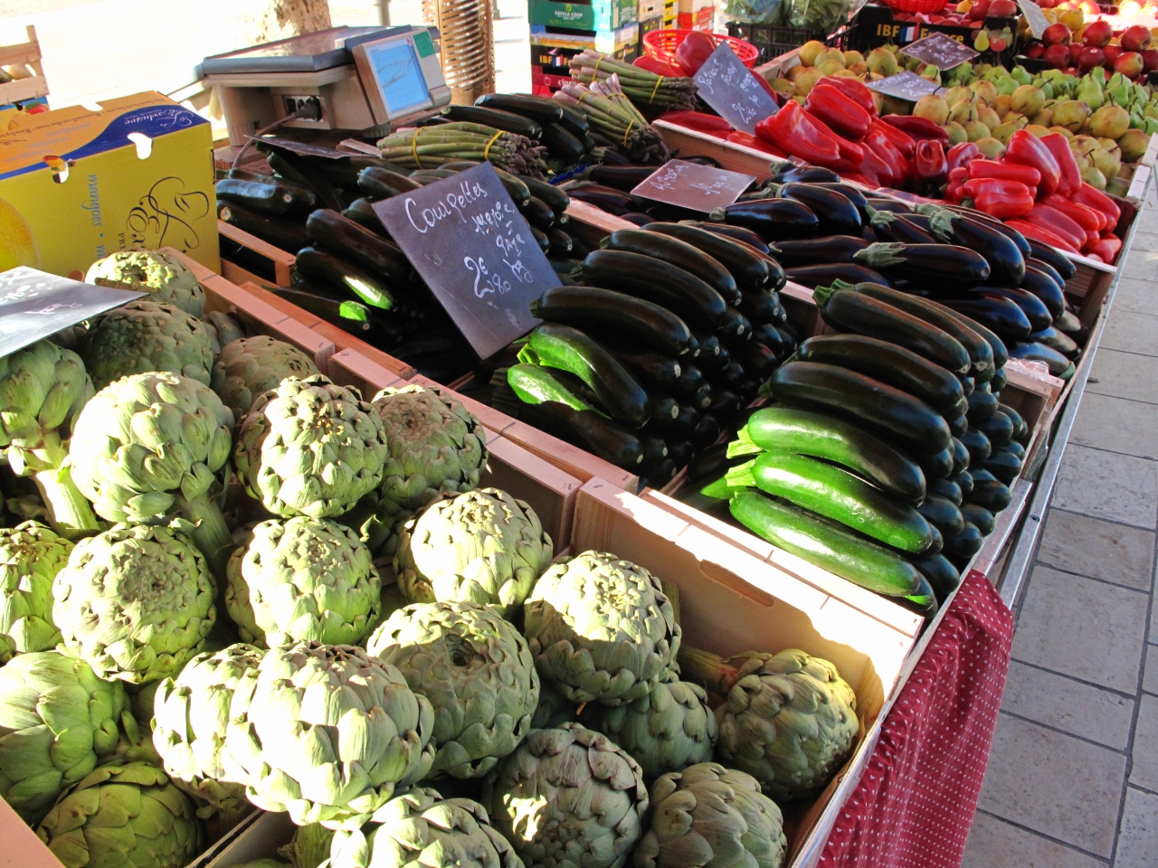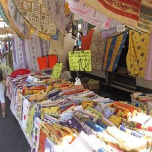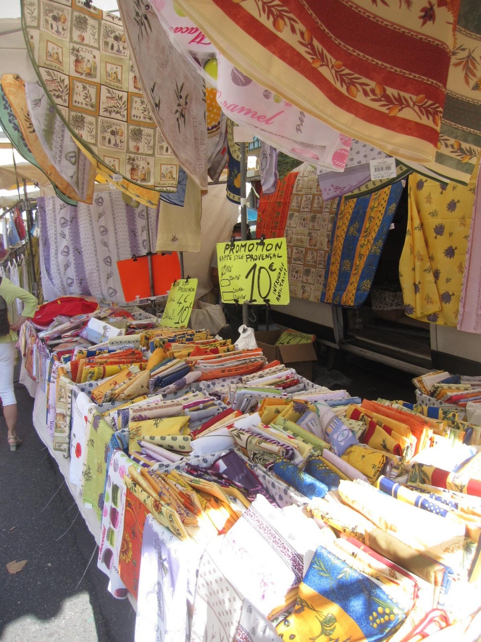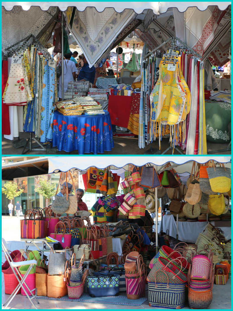 マルシェに並ぶプロヴァンスプリント製品や籠バッグ